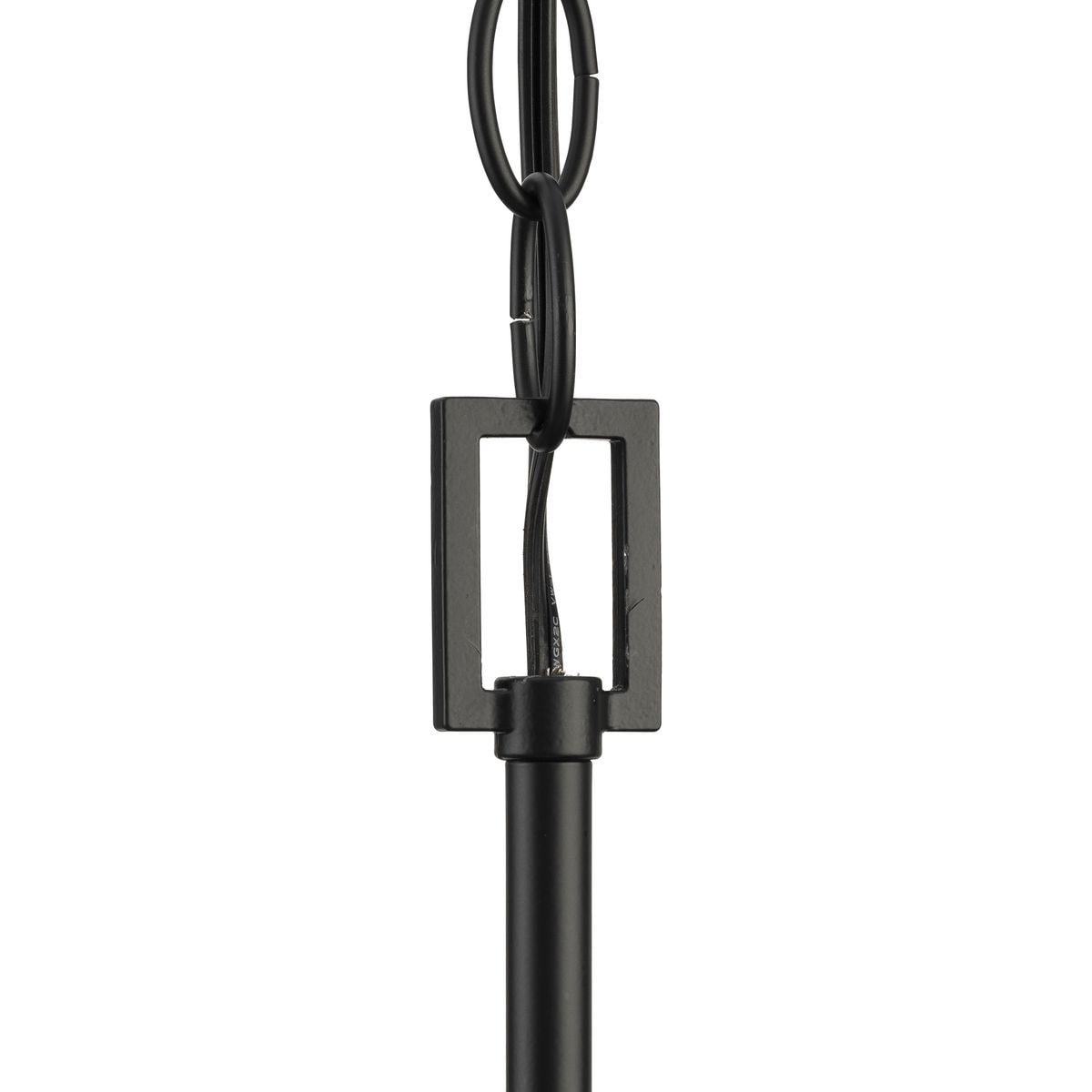 • Design: Modern traditional chandelier with mitered arms and a matte black finish.