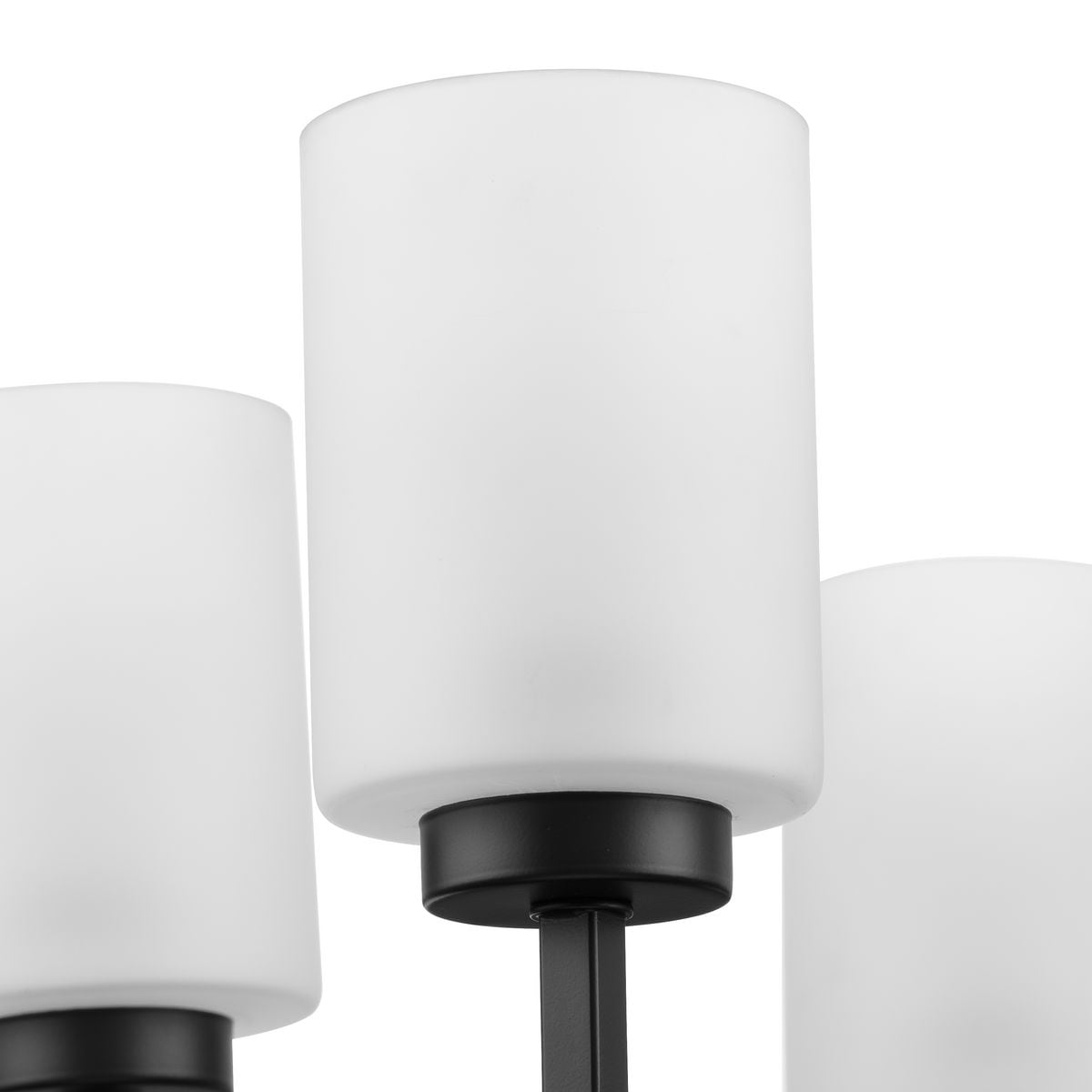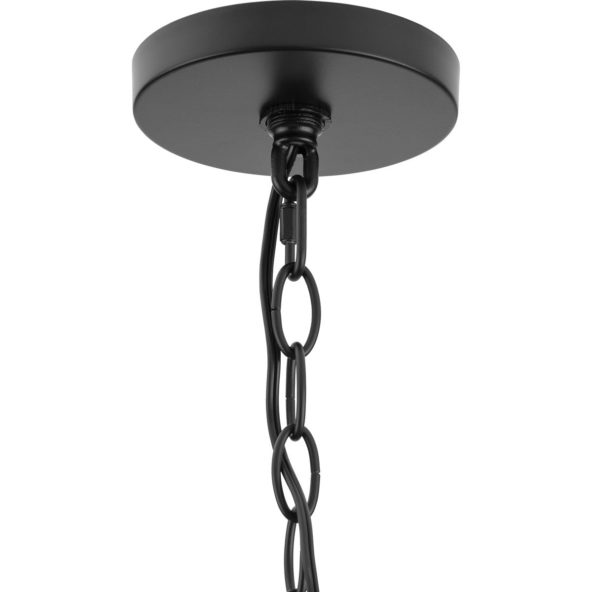 Infuse contemporary elegance into your space with the Progress Lighting Rexington 5-Light Matte Black Chandelier. Featuring sleek mitered arms and sophisticated etched glass shades, this fixture offers versatile, gentle illumination for dining rooms, kitchens, and more. Its adjustable chain allows for customized hanging height, making it a perfect fit for various ceiling styles.