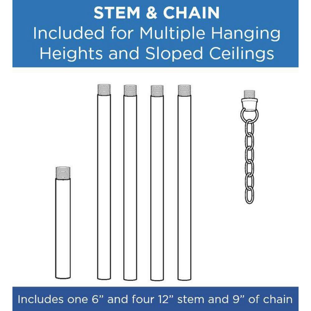 Adjustable Hanging Length: Comes with multiple stems and links for versatile installation, perfect for sloped ceilings.