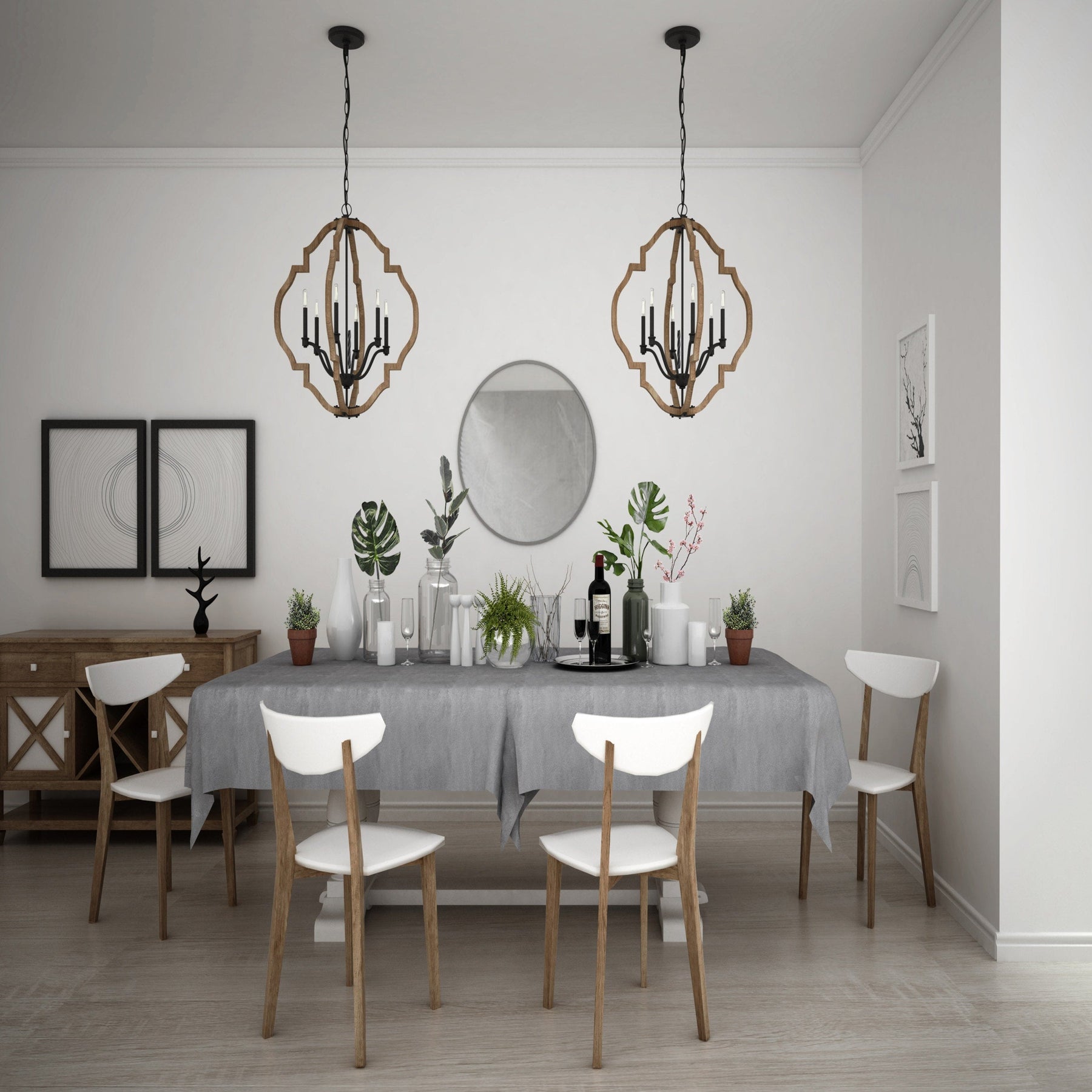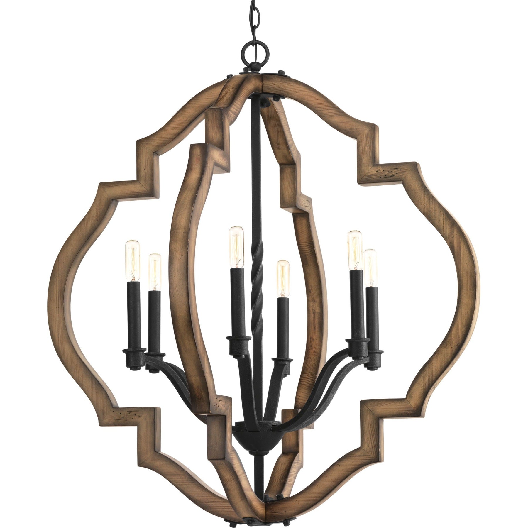 The Spicewood 6-Light Farmhouse Chandelier introduces a stunning interplay of materials and design elements that captivate the eye, transforming any room into a warm, inviting haven. Its intricate quatrefoil wooden frame, accented by a gilded iron finish, exudes an essence of rustic sophistication. Hang it above a reclaimed wood dining table or in a cozy living room to create a focal point that seamlessly harmonizes modern industrial with farmhouse chic. Embrace an atmosphere of luxury living through a meticulously curated blend of texture and style.