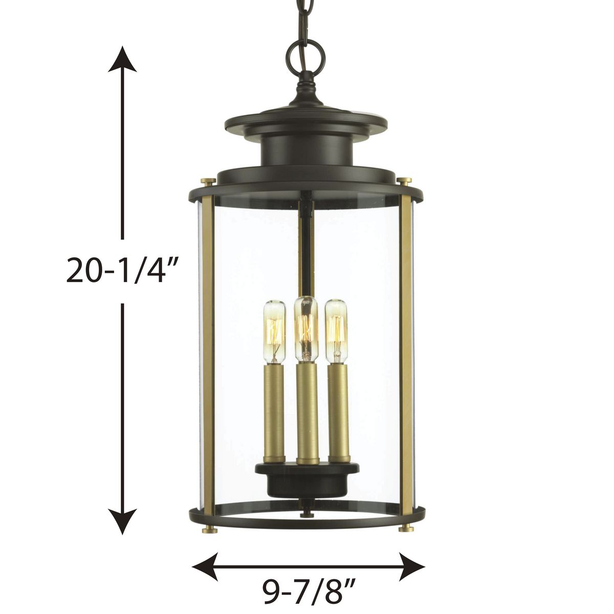 Progress Lighting Squire 3-Light Antique Bronze Traditional Clear Glass Lantern Mini Indoor/Outdoor Hanging Pendant Light