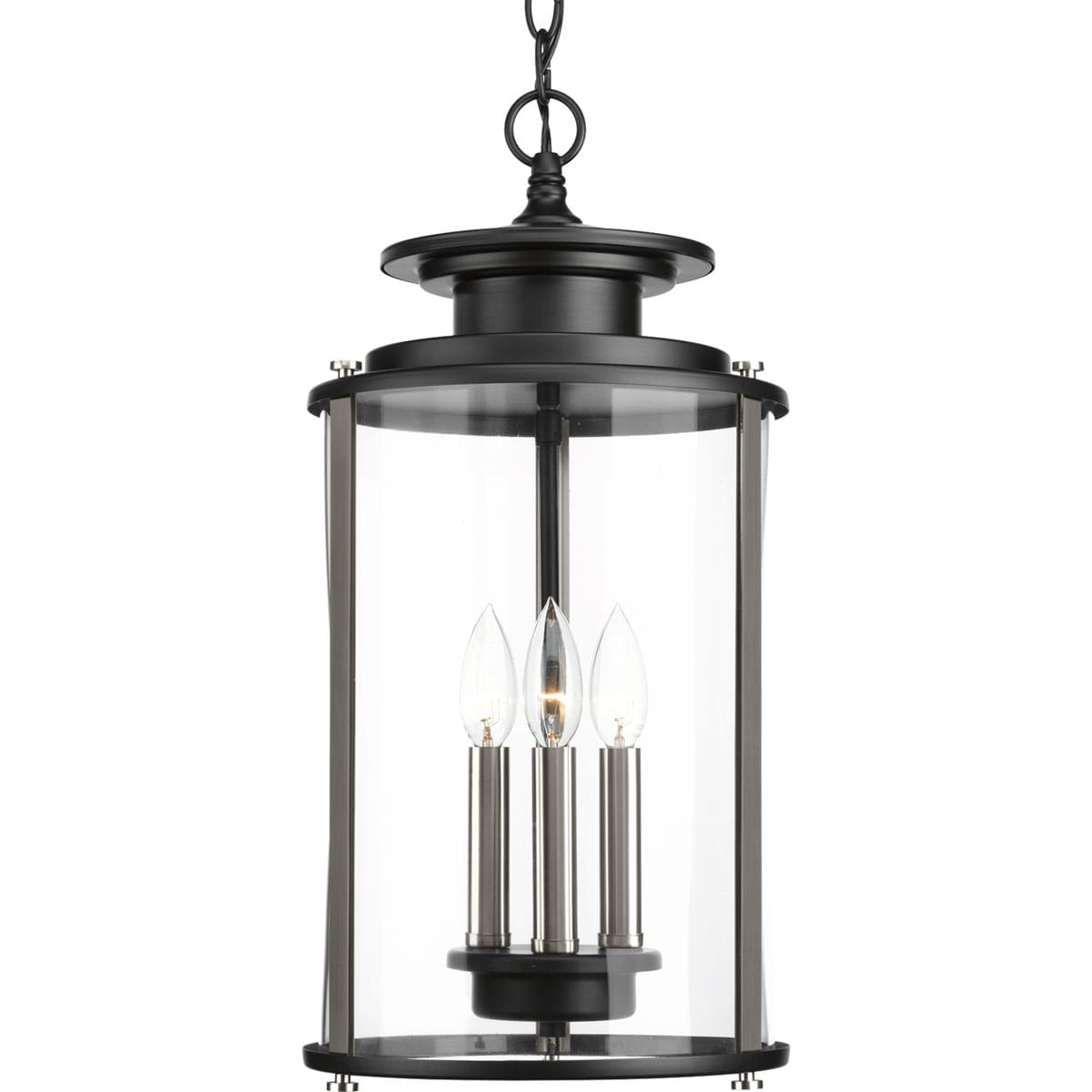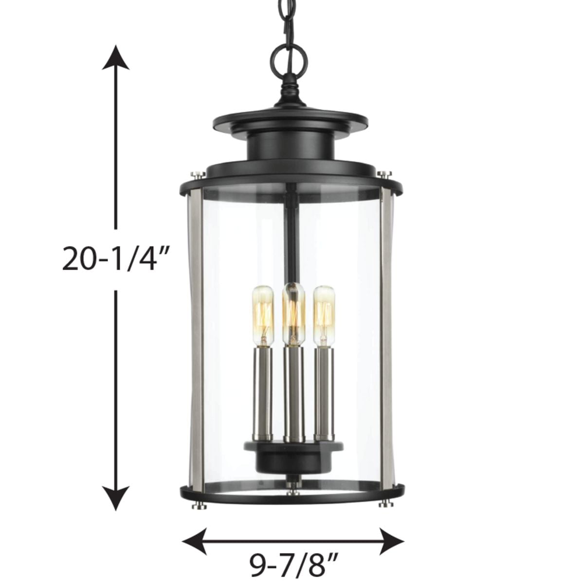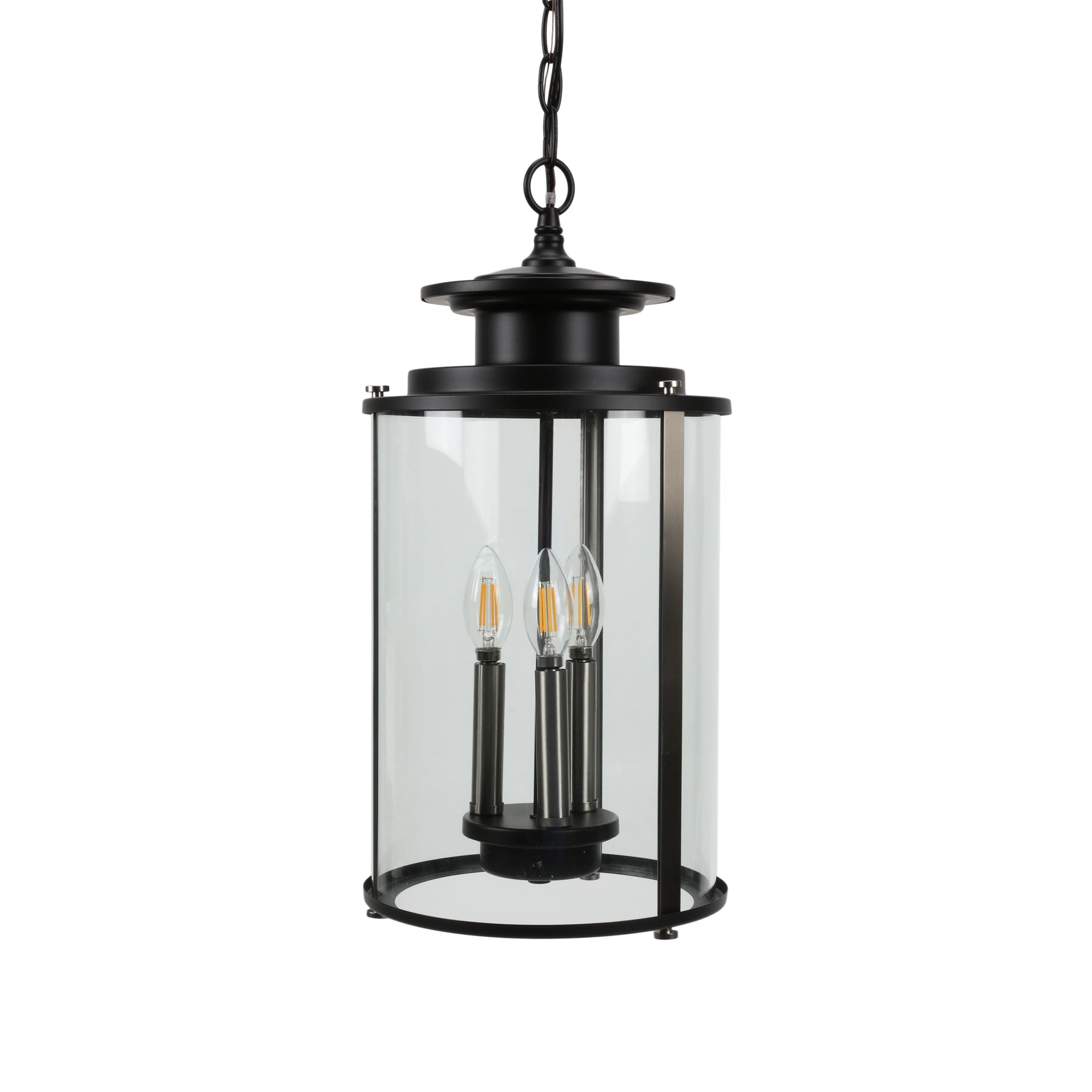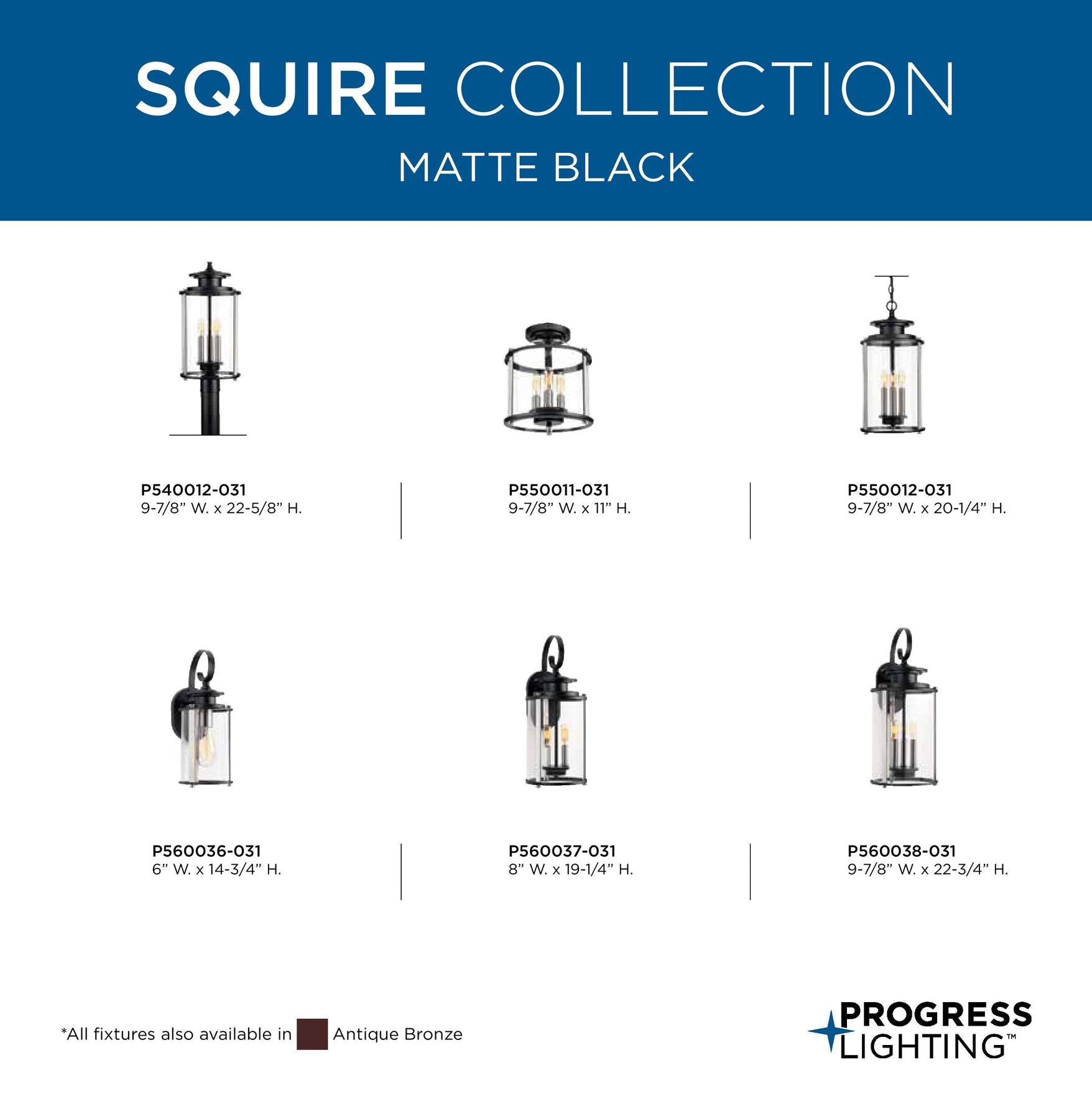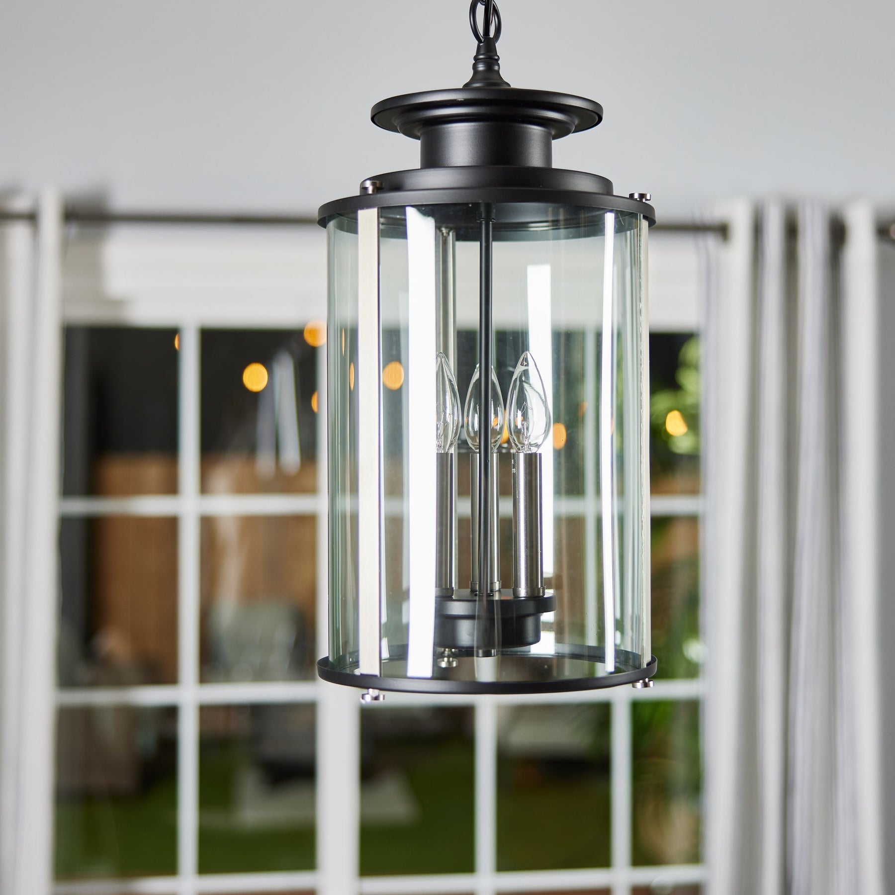 Illuminate your indoor or outdoor spaces with the Squire 3-Light Black Lantern Mini Pendant. Featuring a traditional, timeless design, this pendant light boasts elegant clear glass panels complemented by a classic black finish. Versatile and stylish, it's perfect for enhancing any covered porch, patio, entryway, or foyer with a touch of elegance.