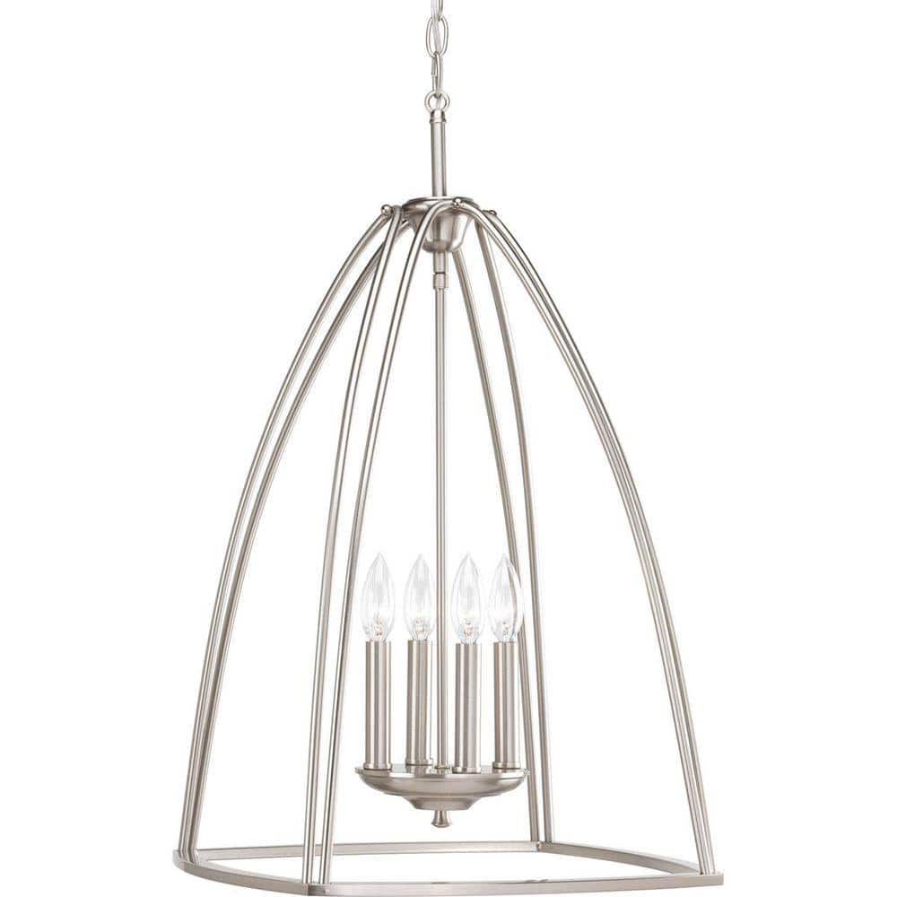 Introduce elegance and modernity to your home with the Tally Collection 4-Light Brushed Nickel Chandelier from Progress Lighting. This sophisticated fixture features a classic design with contemporary touches, making it perfect for foyers, dining rooms, or living rooms. Its open form adds visual intrigue while seamlessly blending with various decor styles.