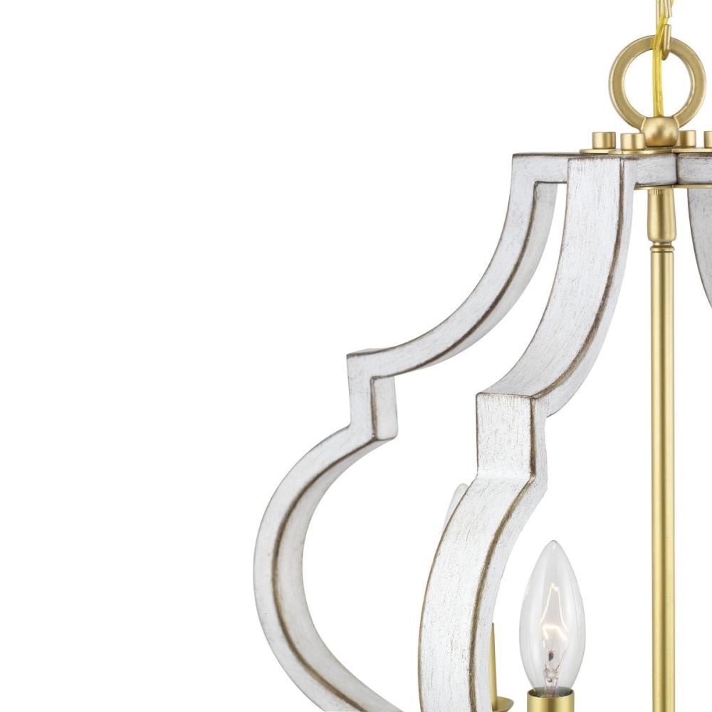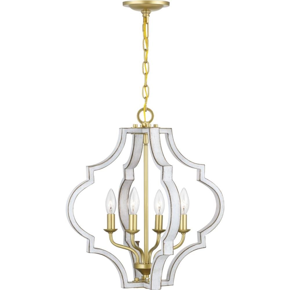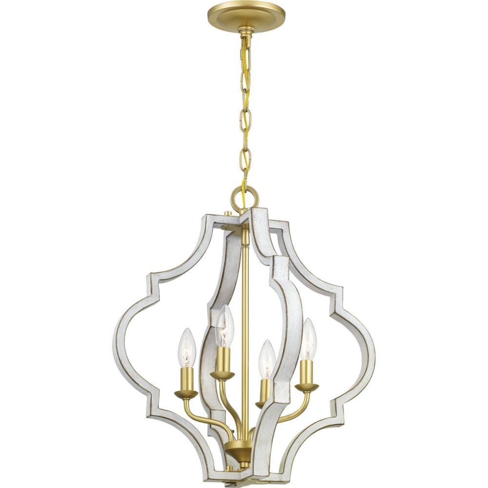 Illuminate your space with the Teigen 4-Light Geometric Pendant from Progress Lighting, featuring an antique white and vintage gold finish for a classic but fresh look. This pendant's open-cage design melds traditional elegance with a modern flair, suitable for any indoor setting.