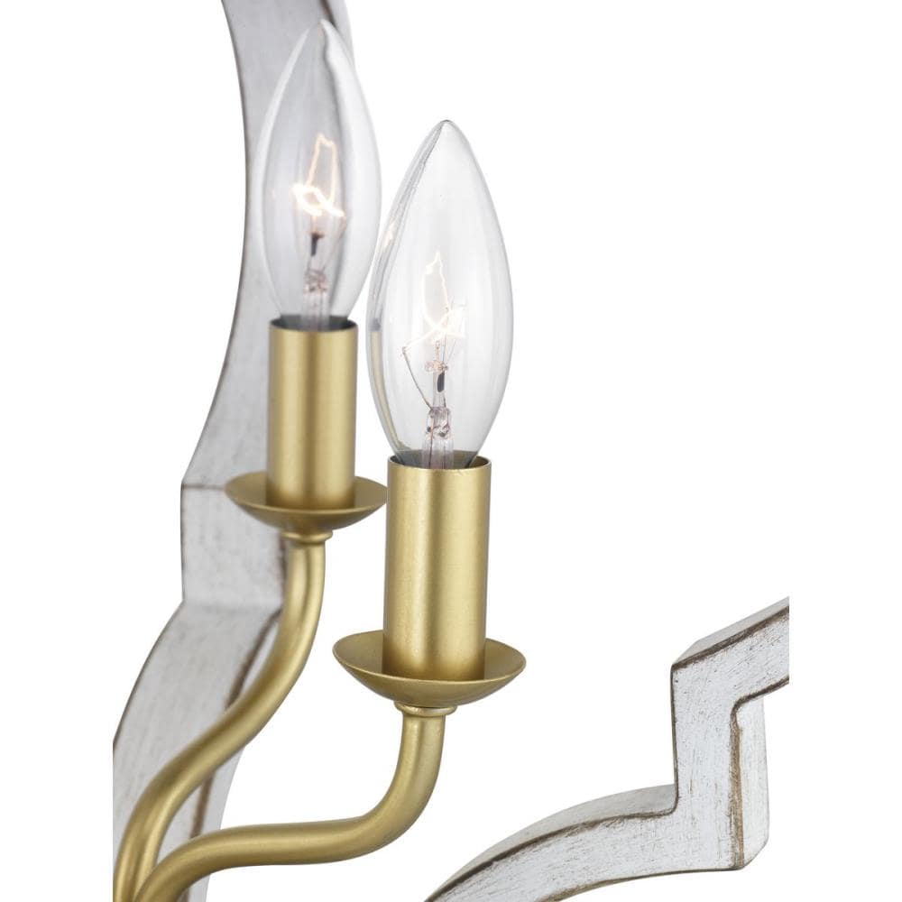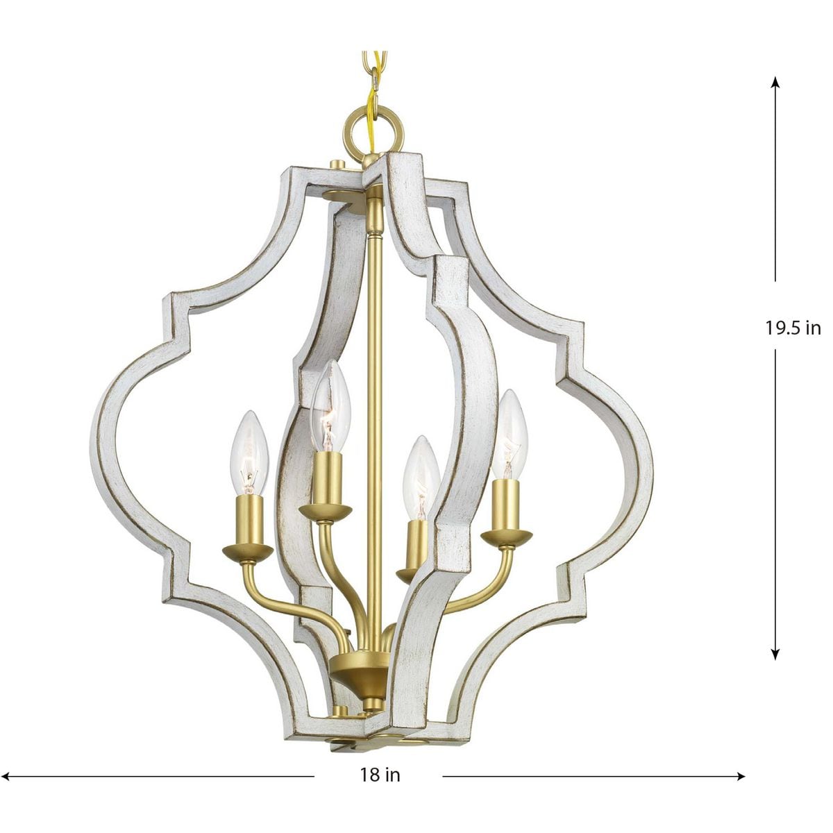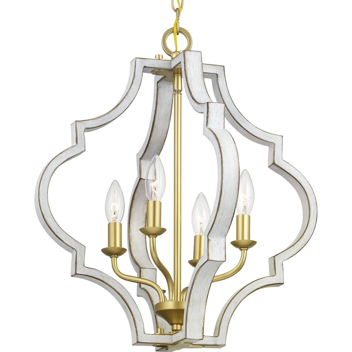 Illuminate your space with the Teigen 4-Light Geometric Pendant from Progress Lighting, featuring an antique white and vintage gold finish for a classic but fresh look. This pendant's open-cage design melds traditional elegance with a modern flair, suitable for any indoor setting.