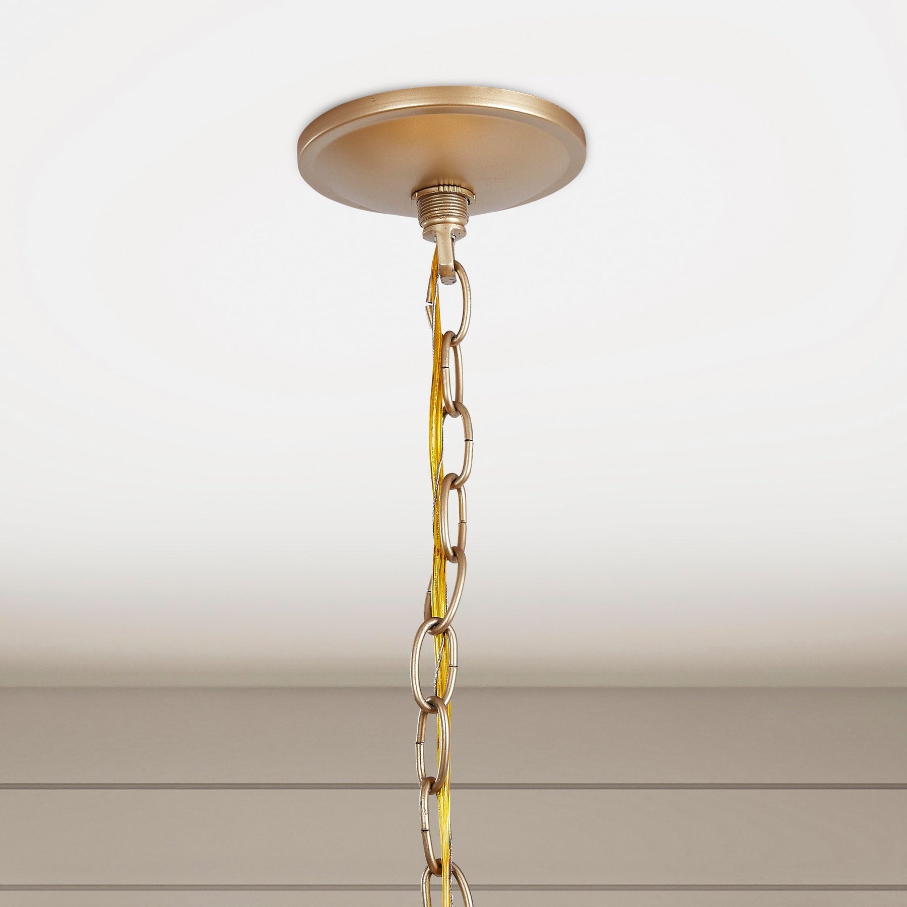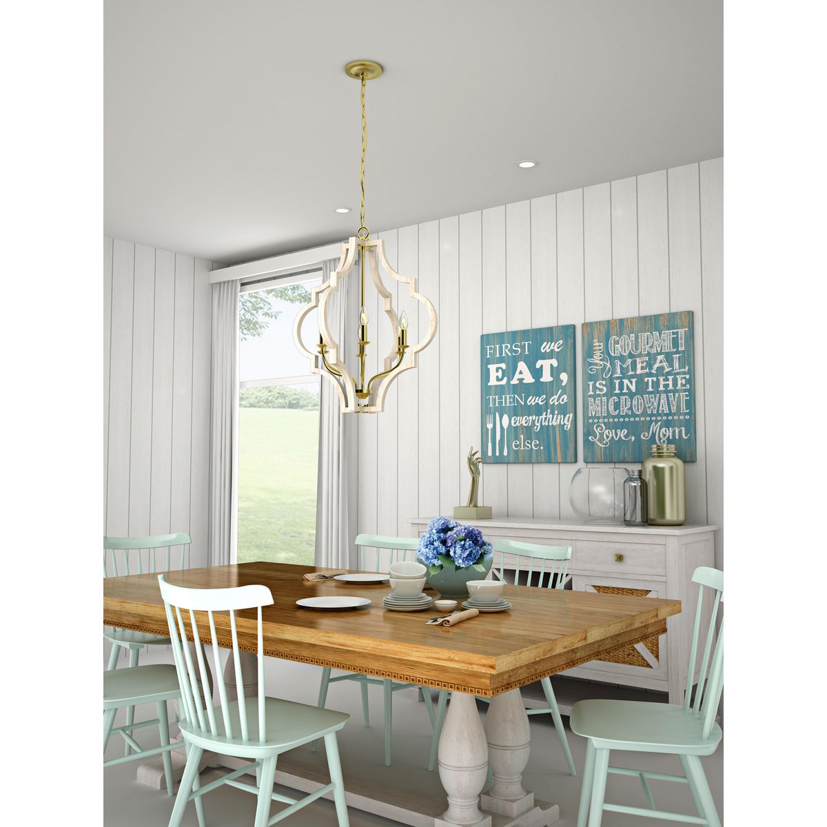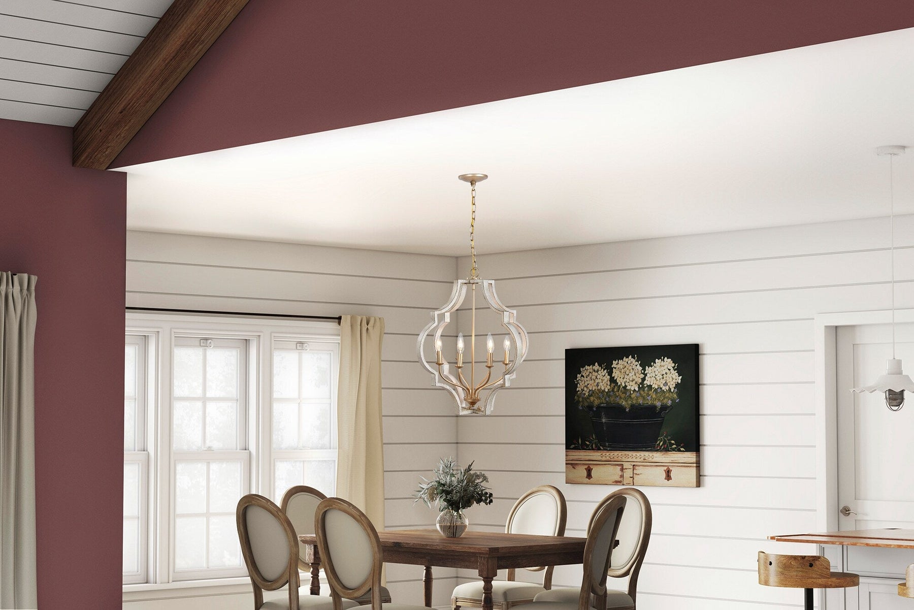 Illuminate your space with the Teigen 6-Light Transitional Pendant Light, featuring a stunning open-cage quattro-foil frame that marries antique white with vintage gold for a timeless appeal. This fixture seamlessly combines traditional elegance with modern flair, creating a captivating centerpiece suitable for any interior style.