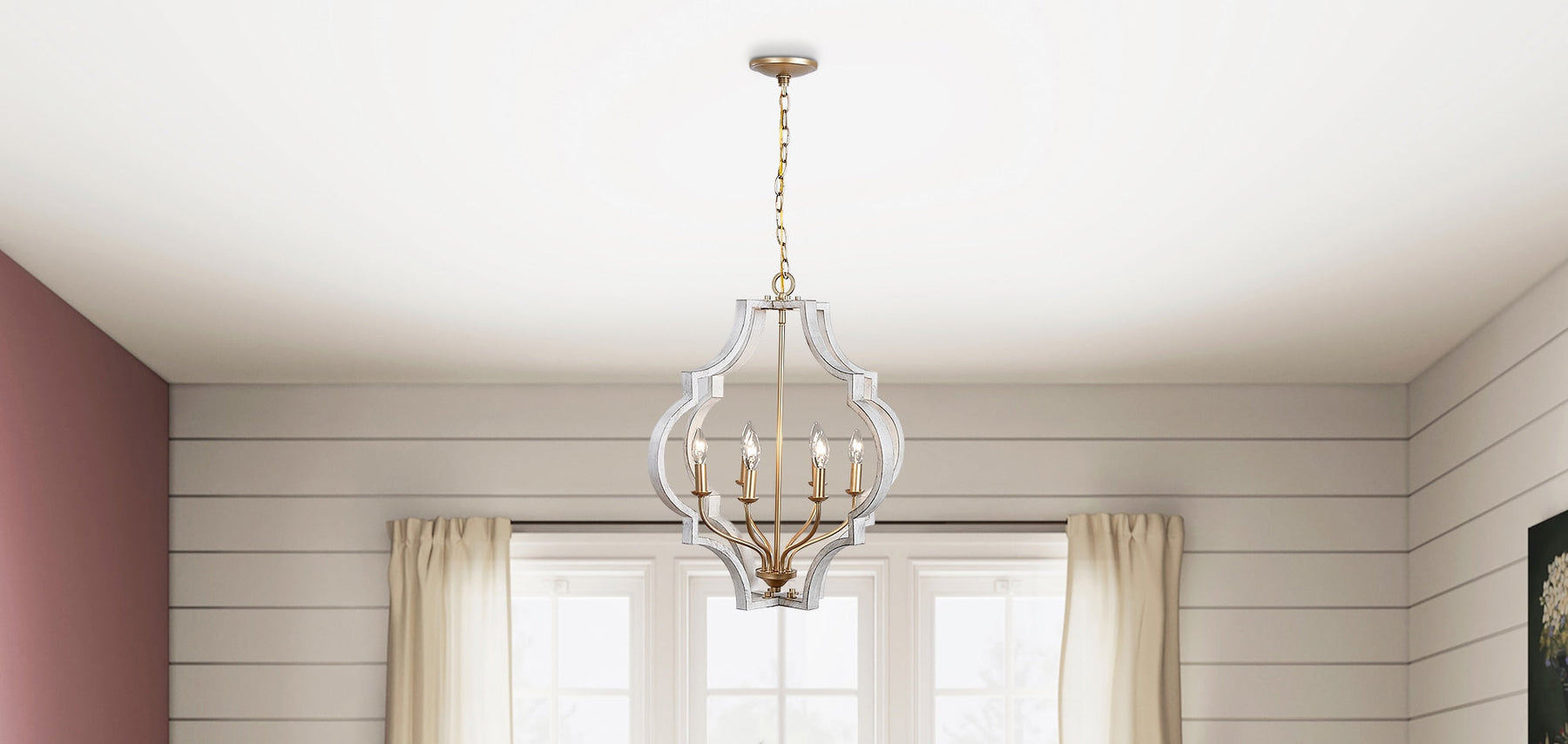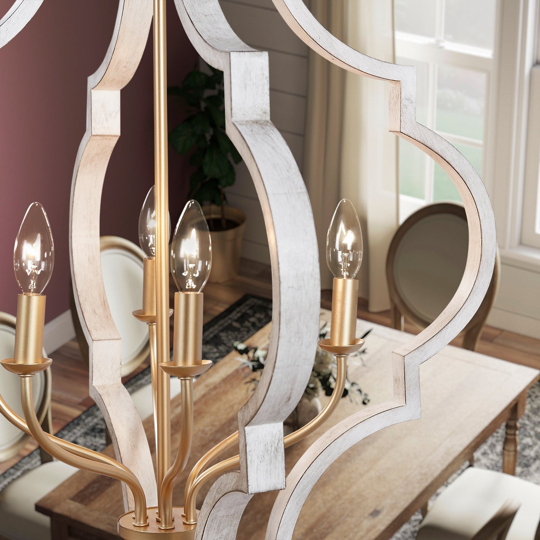 In the realm of light and grandeur, the Teigen Pendant Light dances gracefully as a beacon of style, transforming your space with its artful design. The quatrefoil frame, draped in antique white and vintage gold, evokes a sense of history and elegance. Picture it hung artistically above a grand dining table or as an illuminating welcome in a lofty foyer. This exquisite piece not only casts a warm glow but also stands as a testament to luxurious living, making every gathering a masterpiece.