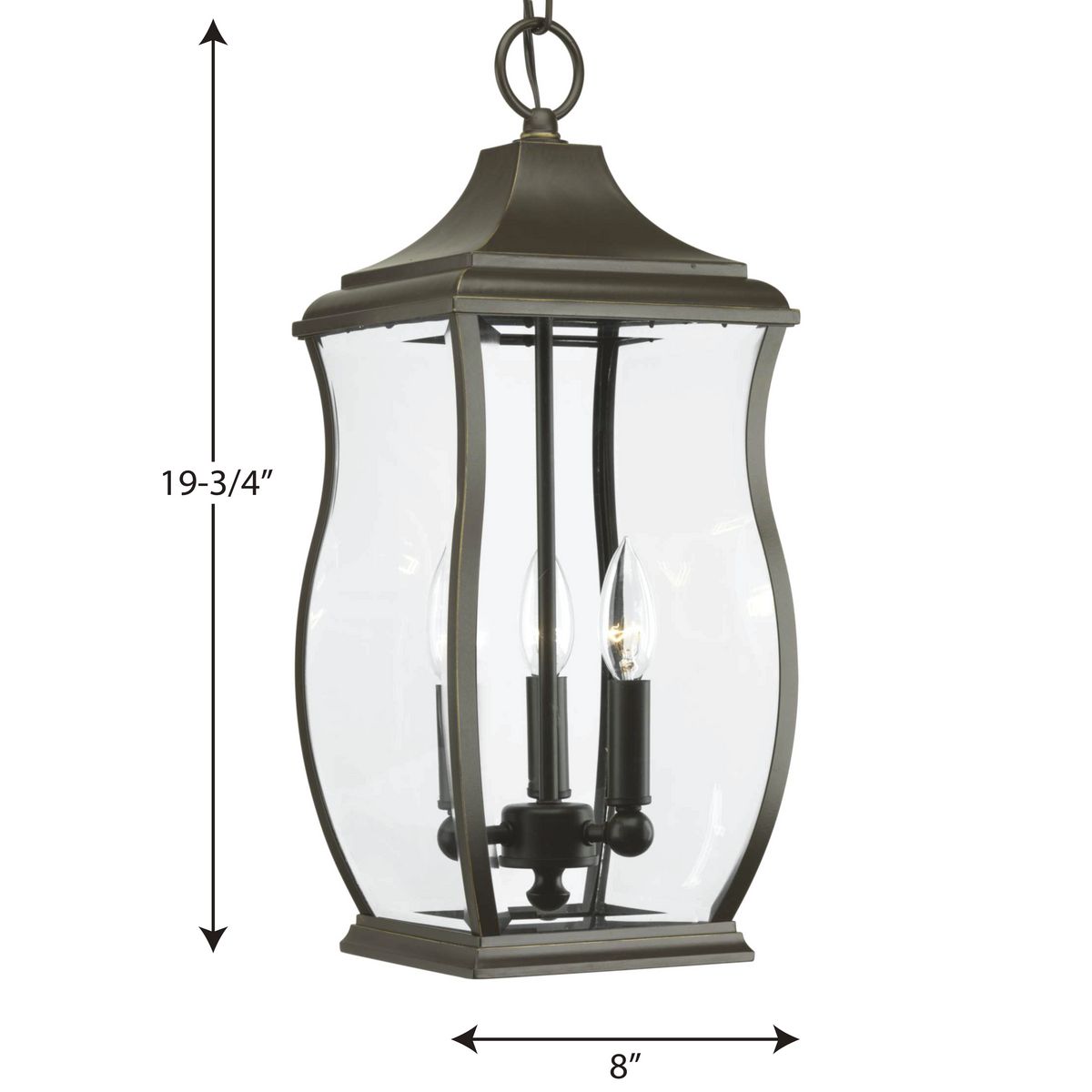 Progress Lighting Township 3-Light Oil Rubbed Bronze Transitional Beveled Glass Lantern Medium Outdoor Hanging Pendant Light