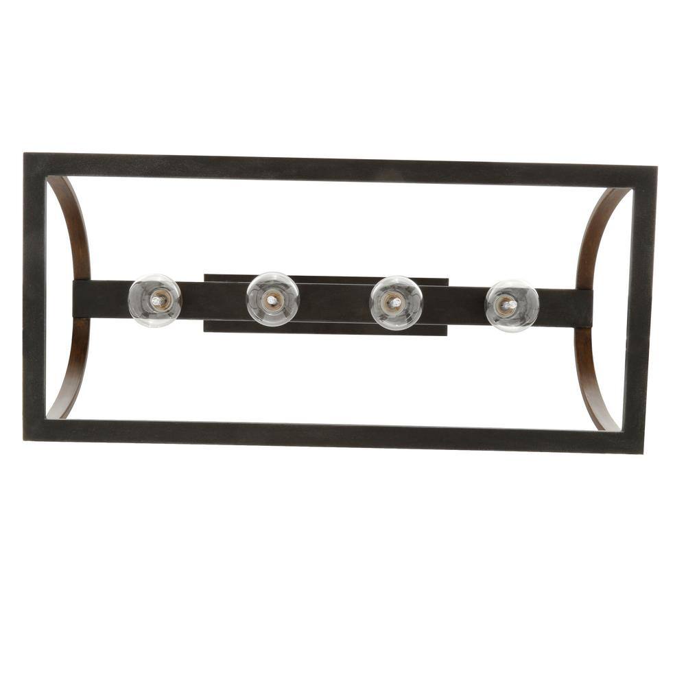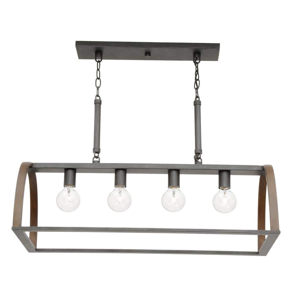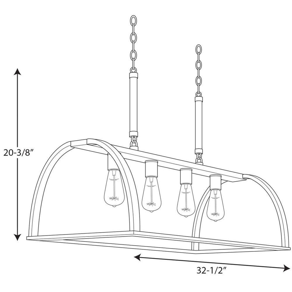 Elevate your space with the Trestle 4-Light Gilded Iron Farmhouse Chandelier by Progress Lighting. Designed for industrial or rustic living areas, this chandelier boasts a hand-painted cage paired with geometric elements, creating a striking visual appeal. Ideal for kitchens, dining rooms, or living areas, its gilded iron finish with oak accents adds understated elegance and warmth.