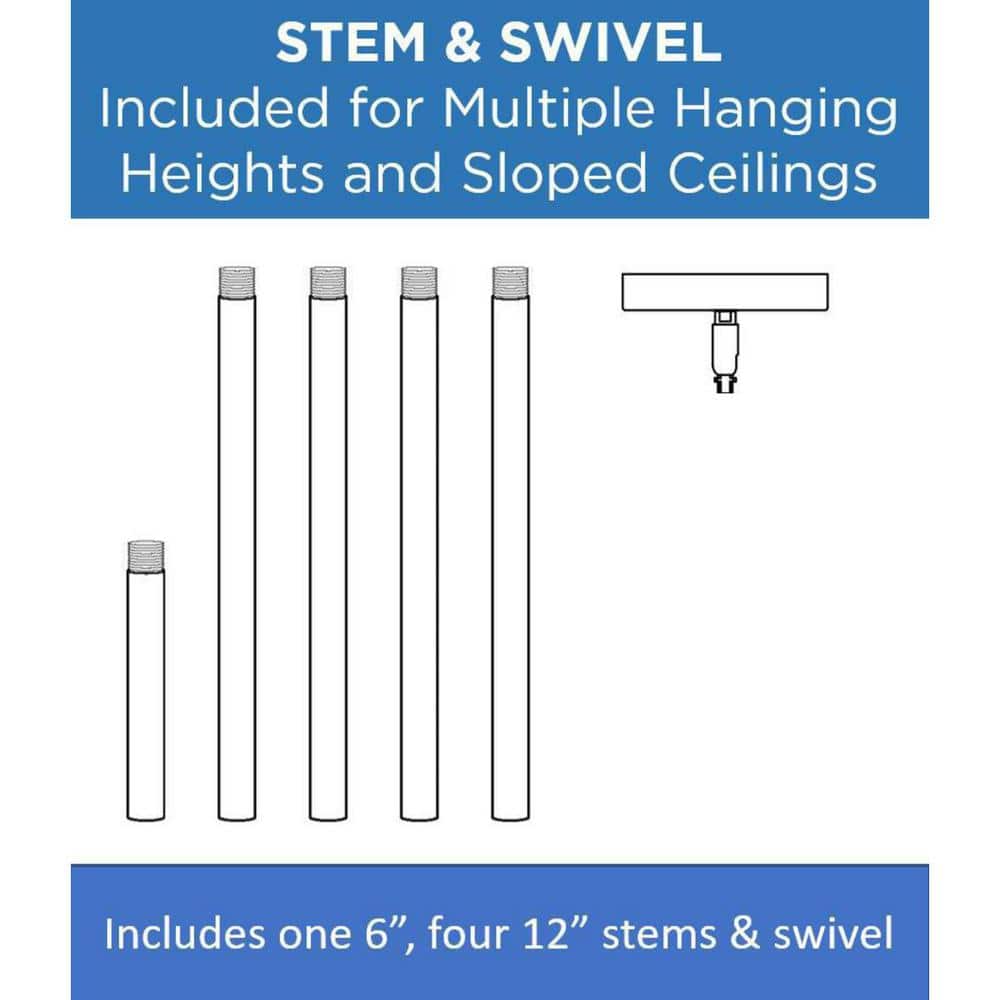 A: The fixture includes multiple stem lengths allowing for a maximum hanging length of 62.5 inches.