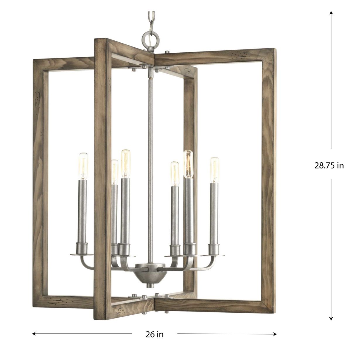 Bring a touch of coastal charm to your home with the Progress Lighting Turnbury 6-Light Gray Coastal Chandelier. Combining solid wood craftsmanship with a stunning galvanized finish, this chandelier beautifully complements coastal, farmhouse, and rustic decor styles. It's designed for versatility and ease with adjustable height and an included 72-inch chain for custom installations.