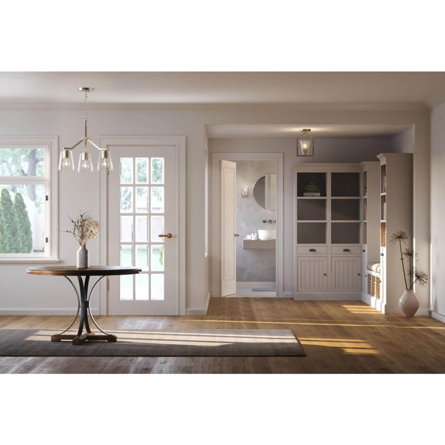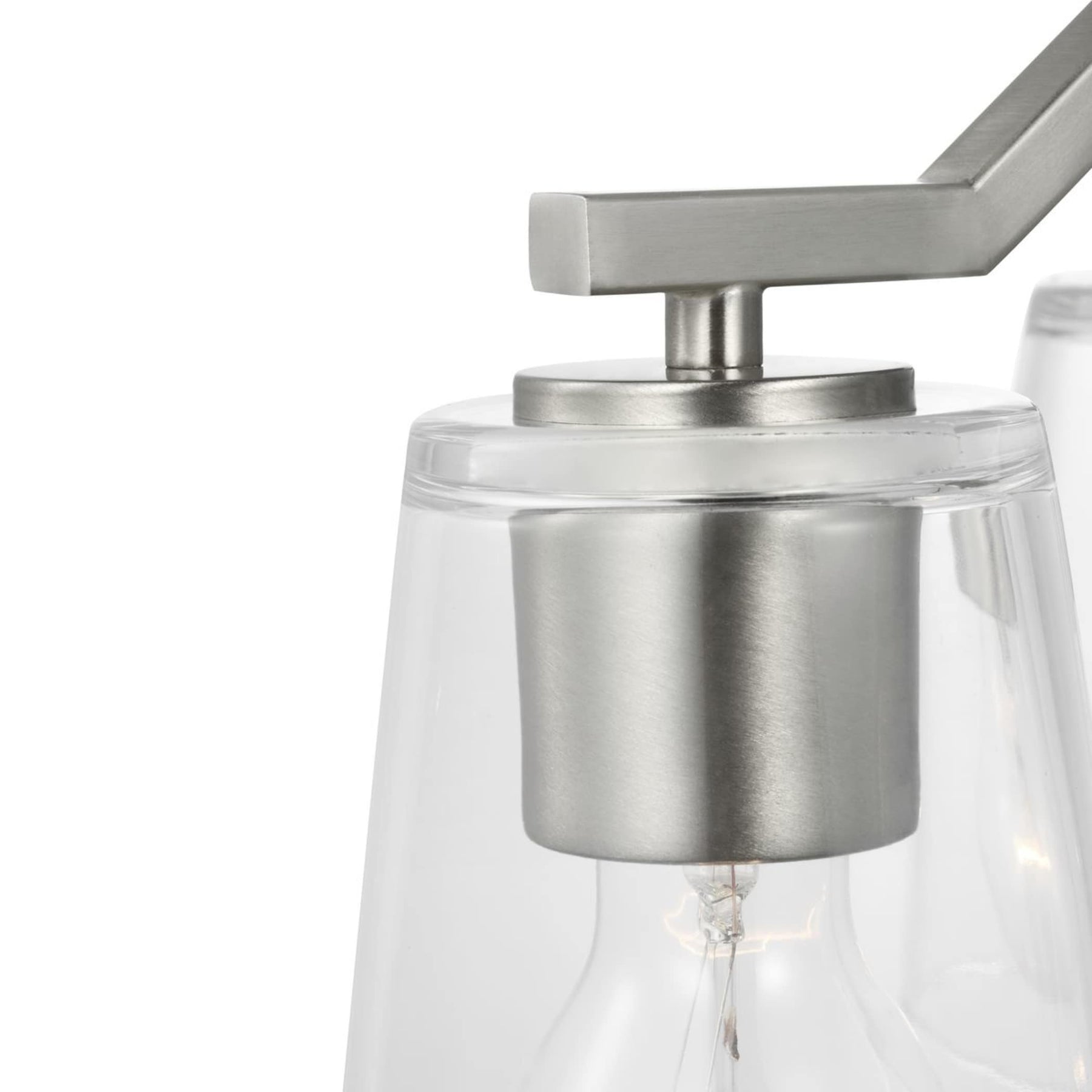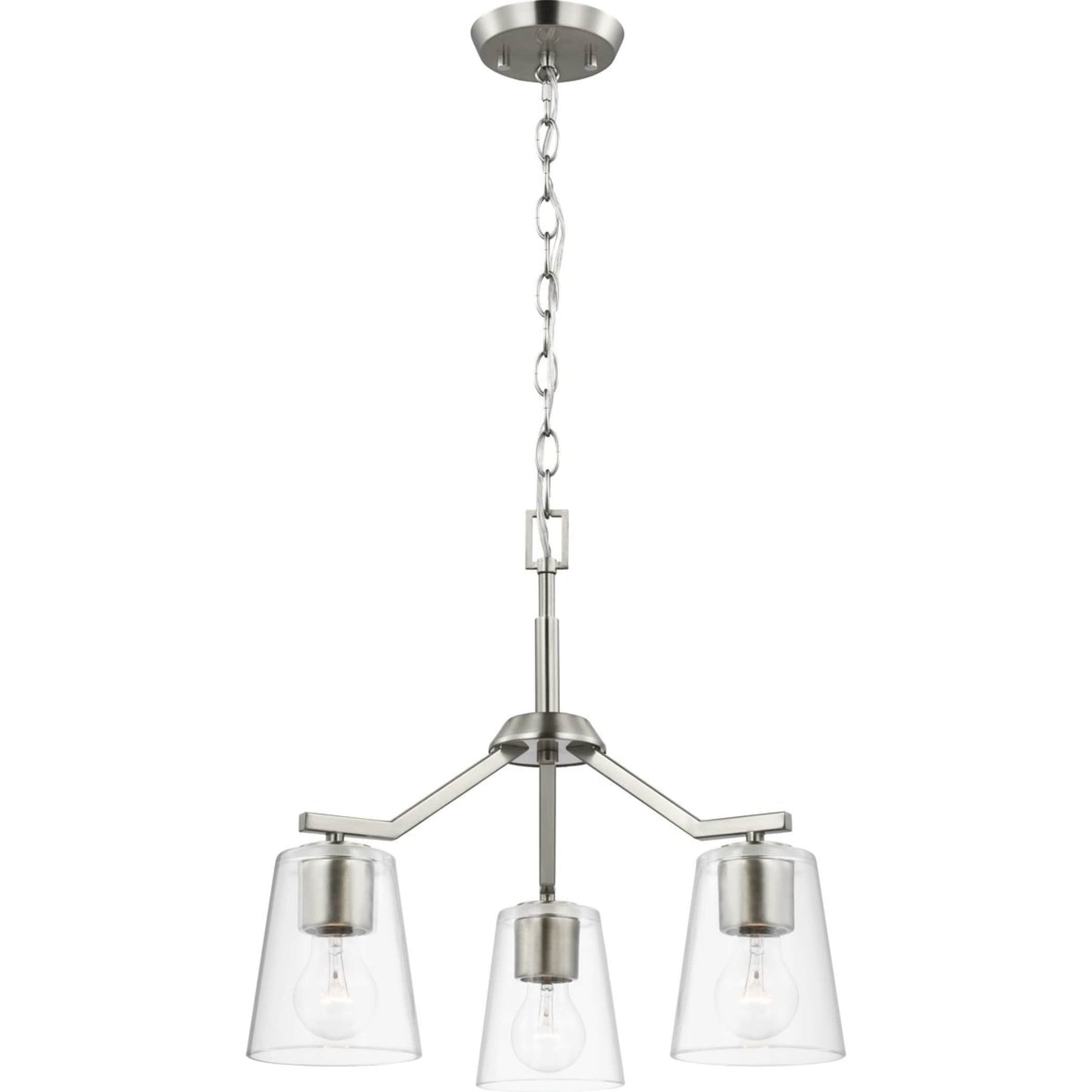 Transform your space with the Vertex 3-Light Chandelier, where modern artistry meets functional design. This piece’s bold silhouette, adorned with crisp brushed nickel, invites a striking play of light across your interiors. Its clear glass shades ensure a luminous glow, perfect for a luxurious dining experience or illuminating a chic foyer. Reimagine your space with this architectural marvel—it’s not just lighting, it's a statement of sophisticated living.