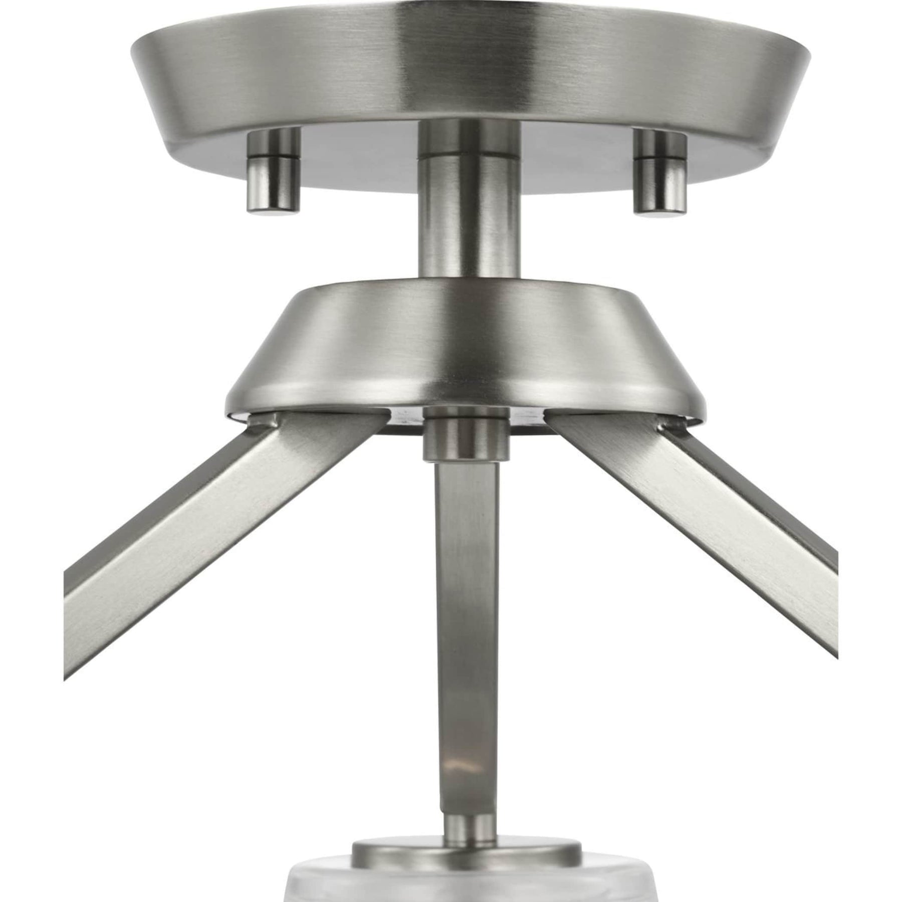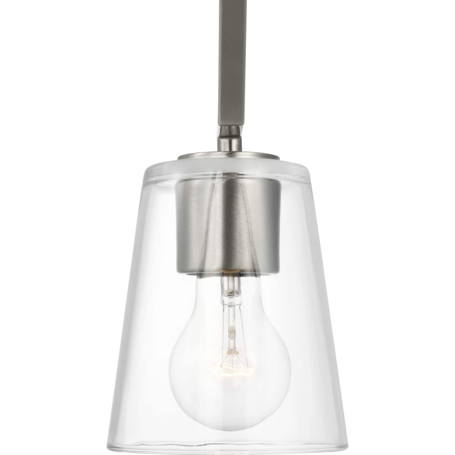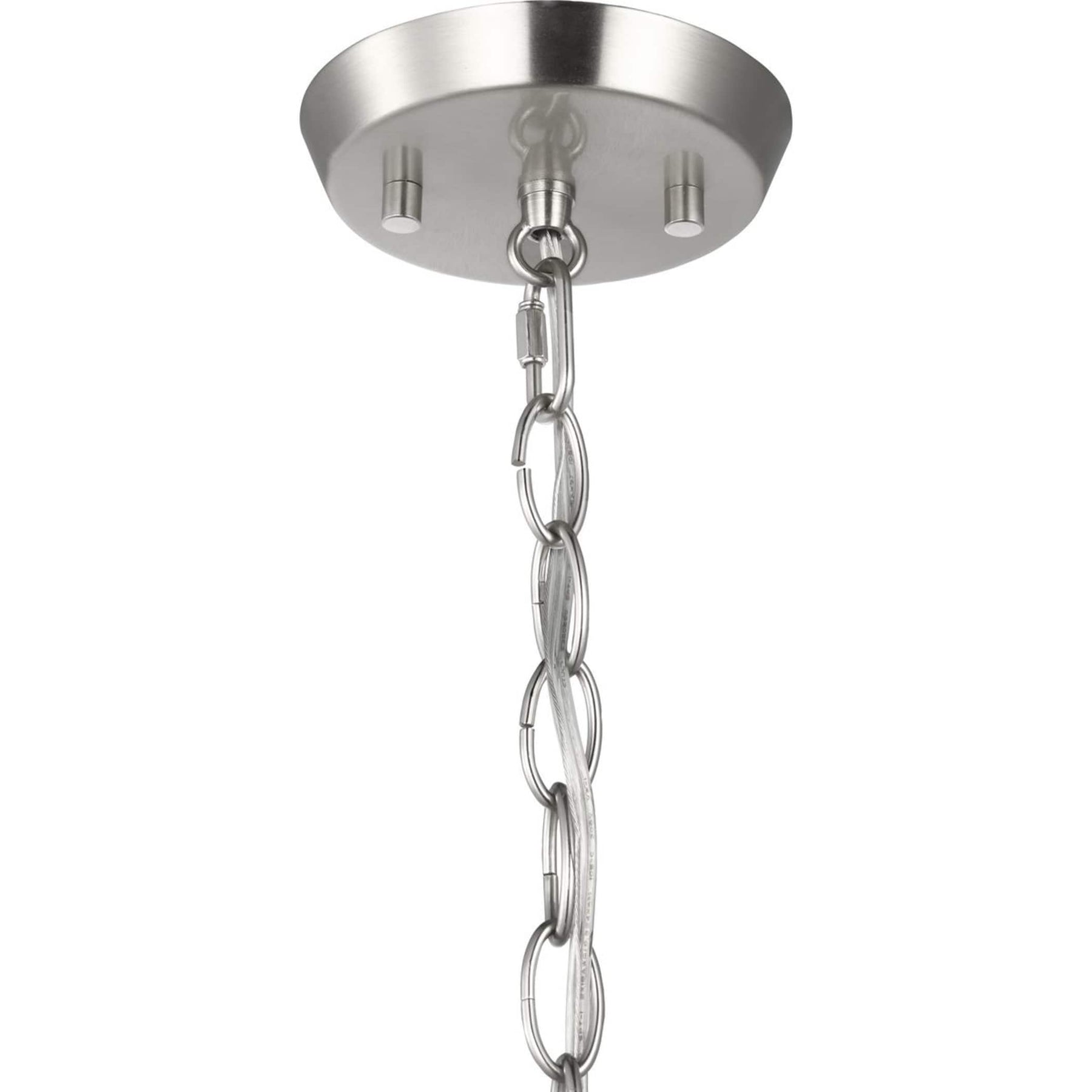 The Progress Lighting Vertex Chandelier enhances modern and contemporary spaces with its sophisticated design. Finished in brushed nickel, its angular silhouette and clear glass shades offer versatile illumination. Ideal for kitchens, dining rooms, and foyers, it adds a stylish touch to any setting.