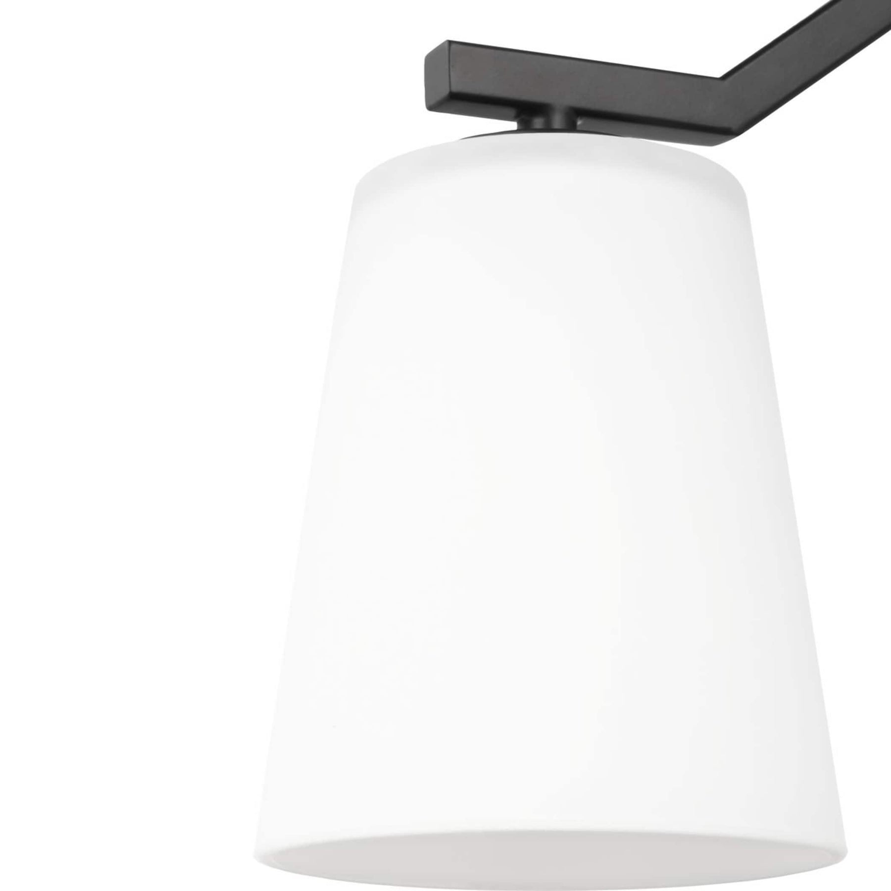 Ambient Lighting: Etched white cone glass shades offer soft and inviting illumination.