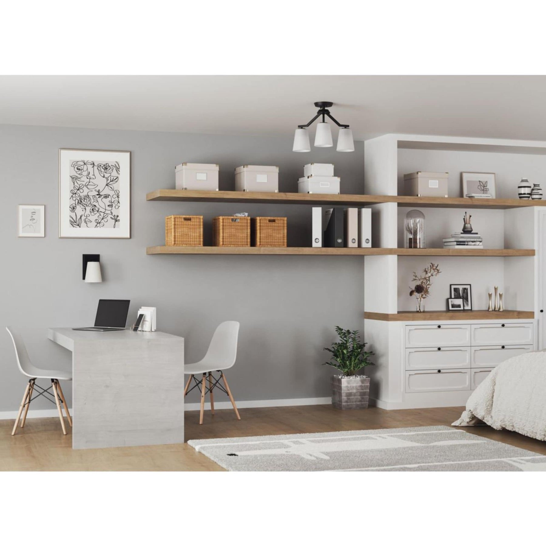 Dimmable Functionality: Compatible with three 60-watt bulbs or LED equivalents for adjustable lighting mood.