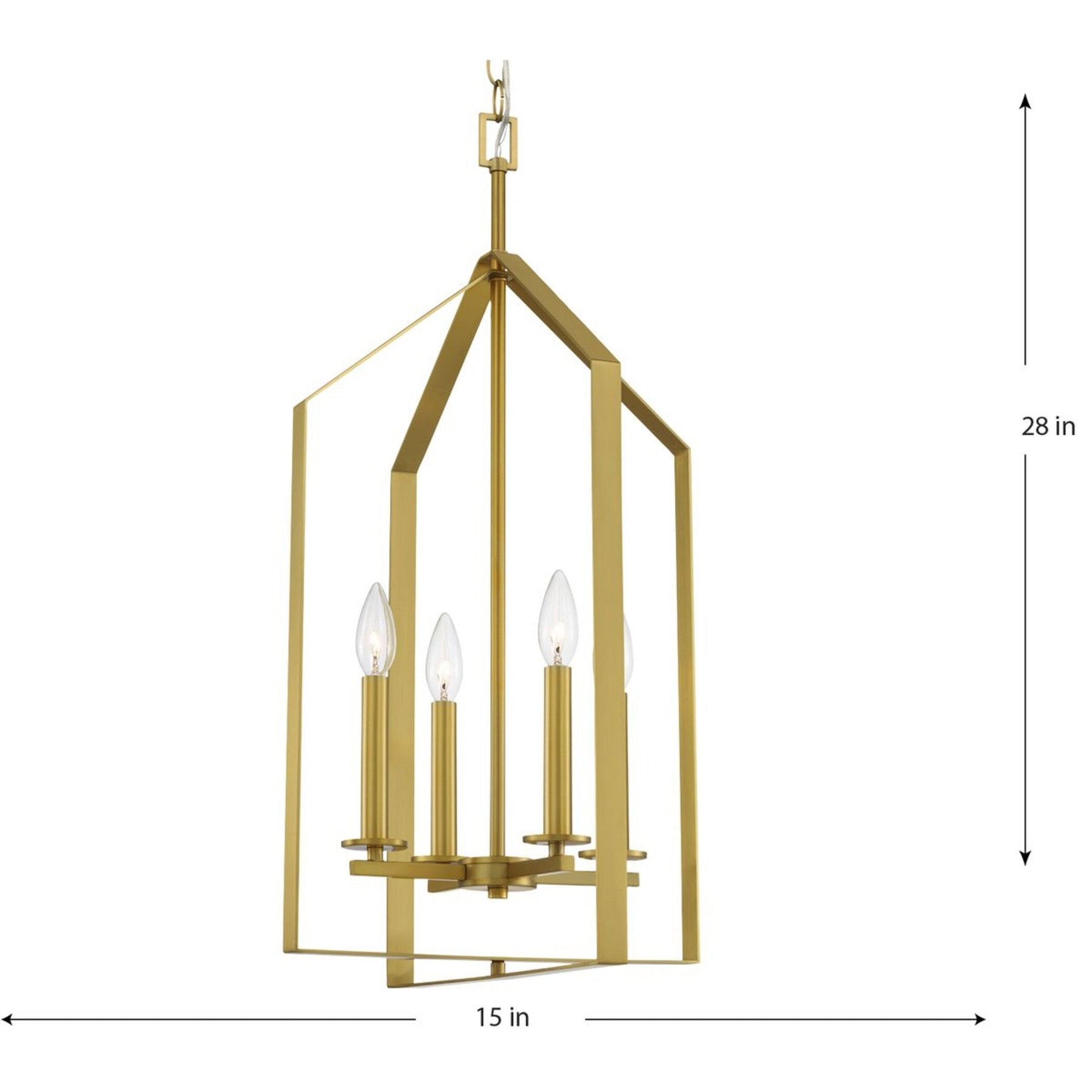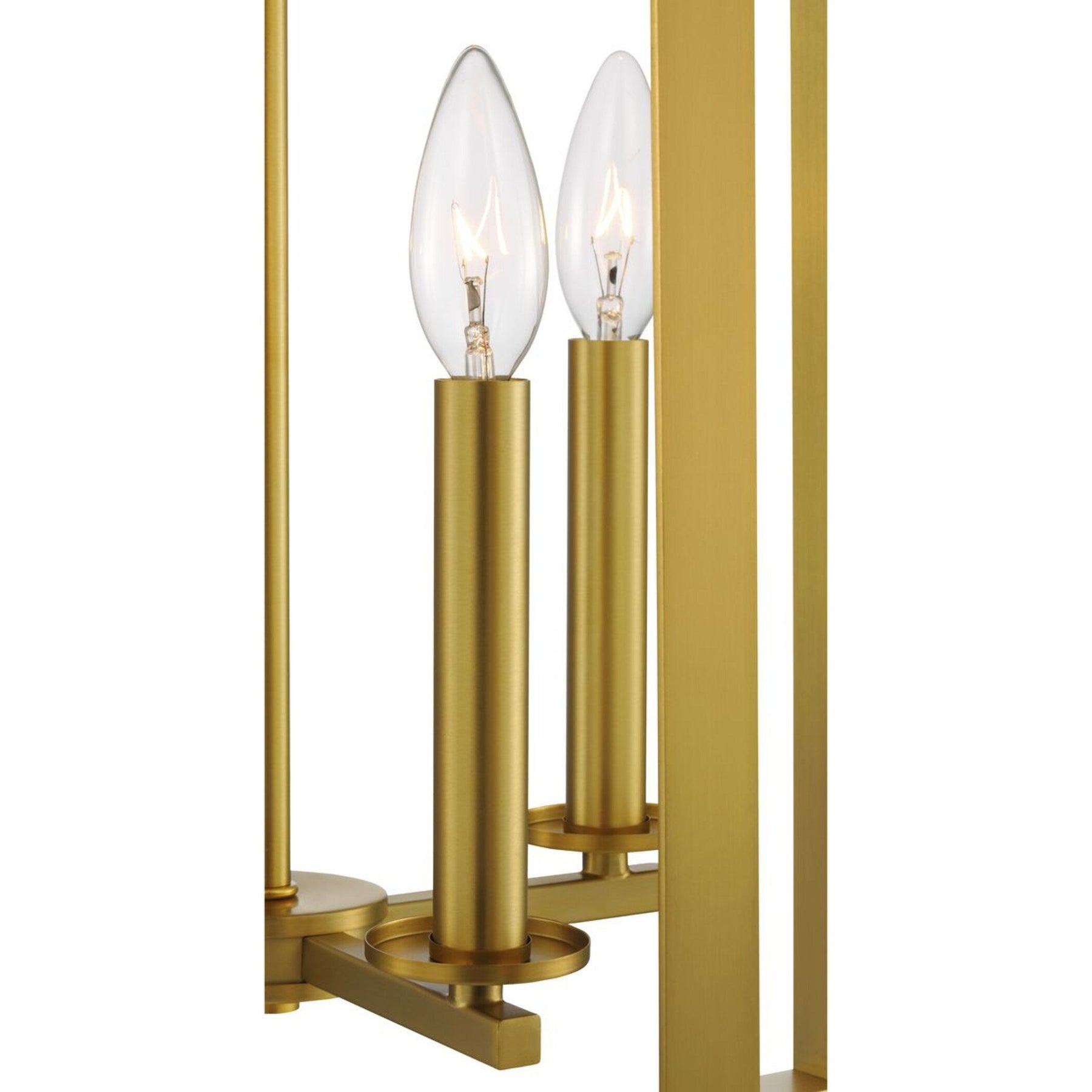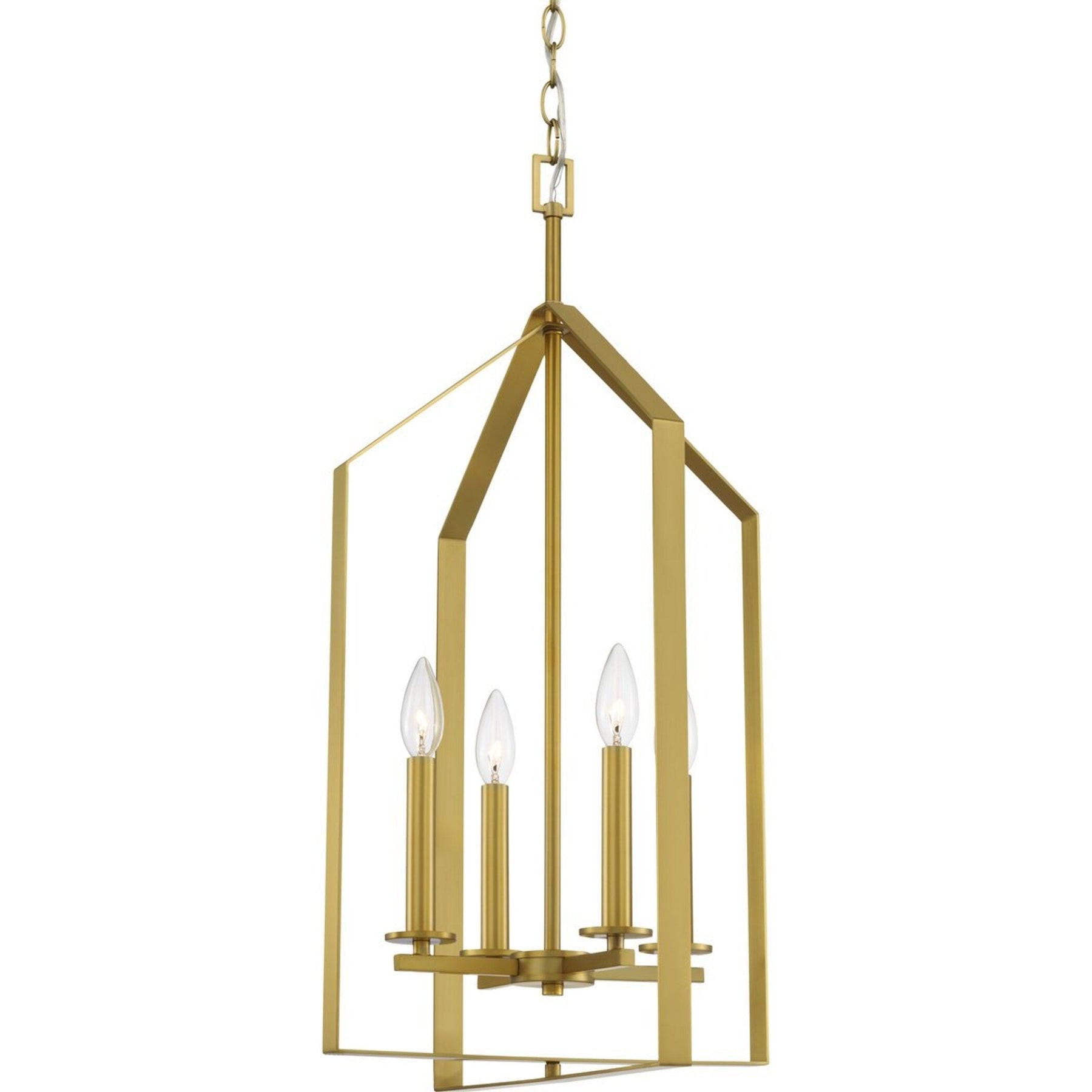 The Progress Lighting Vertex Pendant Light elevates any space with its modern geometric design and brushed gold finish, making it a stunning focal point for foyers, dining rooms, and kitchens. This medium-sized pendant is ideal for transitional and contemporary interiors, offering versatile installation options with an adjustable chain for varied ceiling heights.