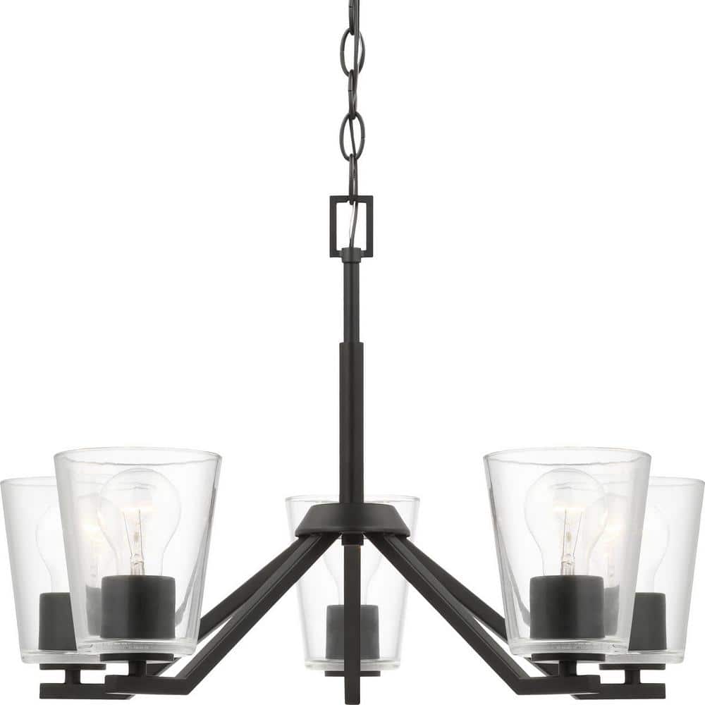 Progress Lighting Vertex Collection 5-Light Matte Black Clear Glass Contemporary Chandelier