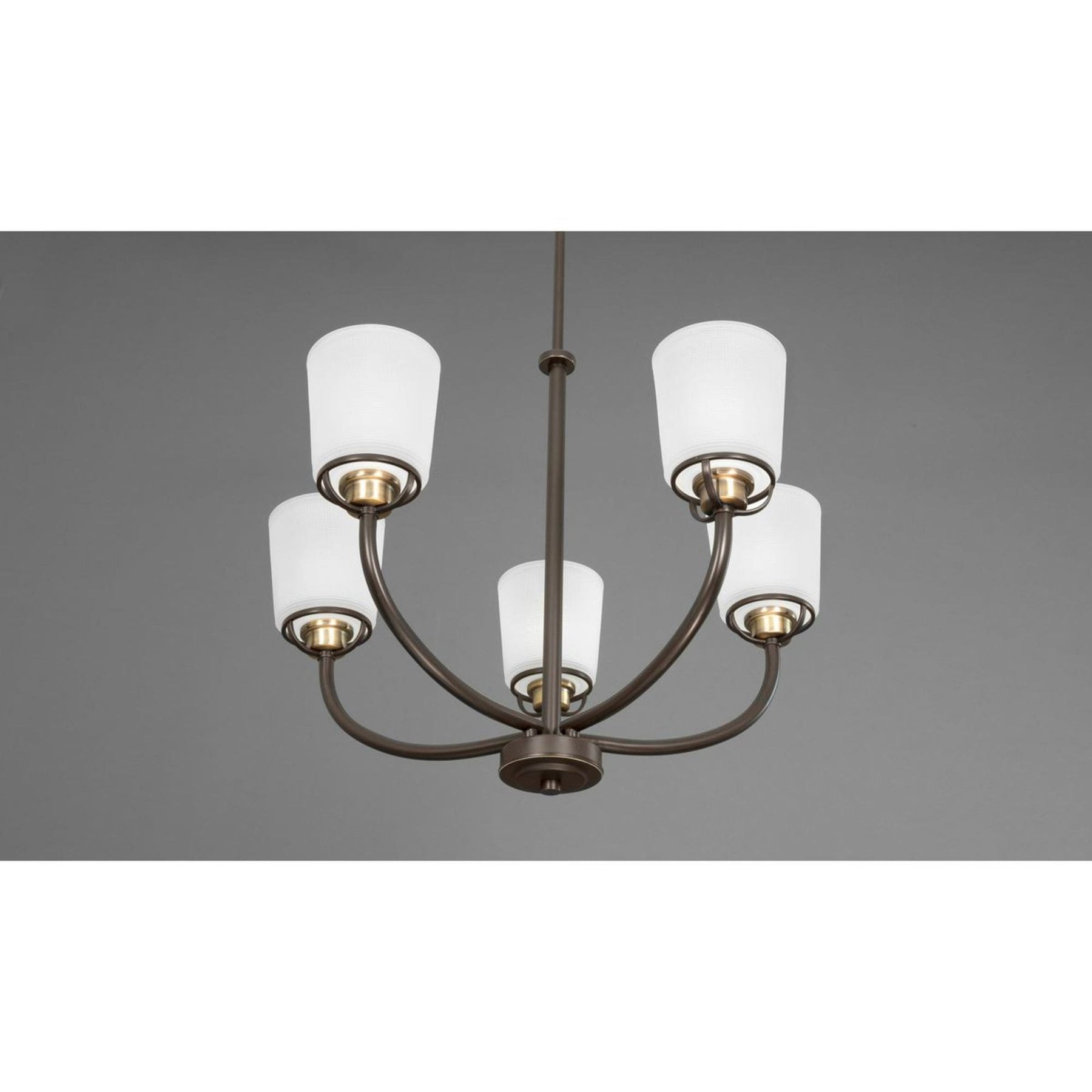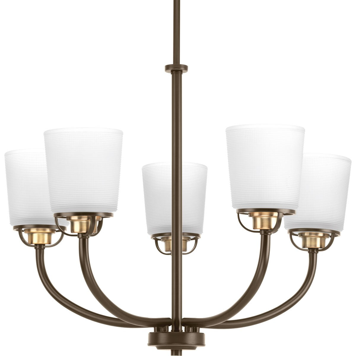 Enhance your space with the West Village 5-Light Transitional Chandelier from Progress Lighting. This piece combines a rich Antique Bronze finish with elegant etched double prismatic glass, offering a sophisticated touch to any room. Perfectly suited for a variety of interior styles, this chandelier's adjustable design allows for seamless integration into dining rooms or great rooms, ensuring the perfect ambiance with its versatile glow.