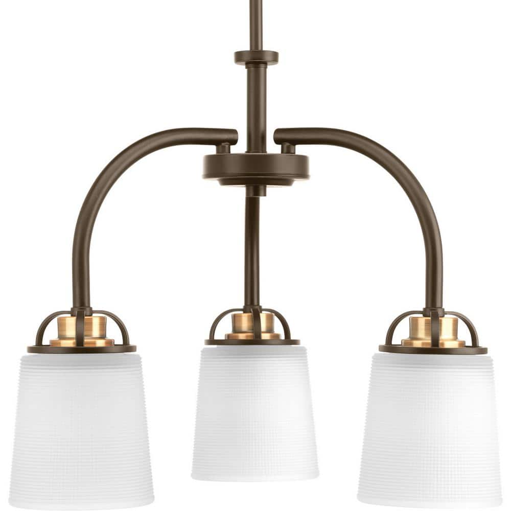 Progress Lighting West Village Collection 3-Light Antique Bronze Etched Double Prismatic Glass Farmhouse Chandelier Light