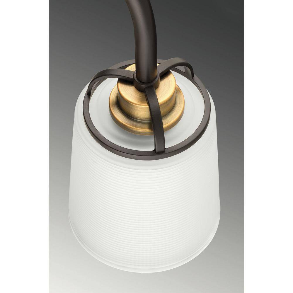 Elevate your space with the West Village Collection 3-Light Chandelier by Progress Lighting. This fixture combines industrial flair with farmhouse charm, featuring antique bronze and brass finishes. Its double prismatic glass shades add a touch of elegance to any dining room, kitchen island, or living room.