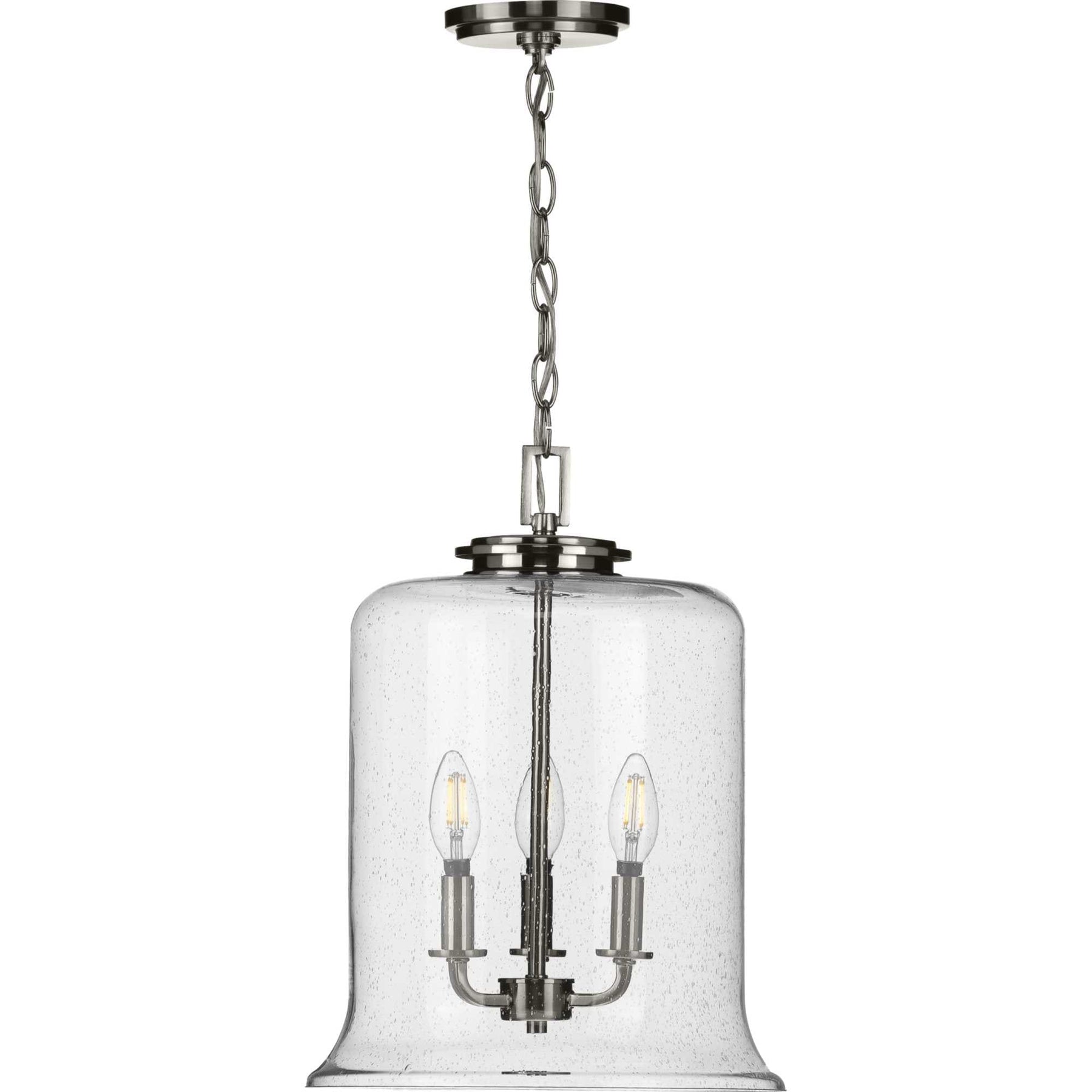 Progress Lighting Winslett 3-Light Brushed Nickel Coastal Seeded Glass Cylinder Medium Hanging Pendant Light