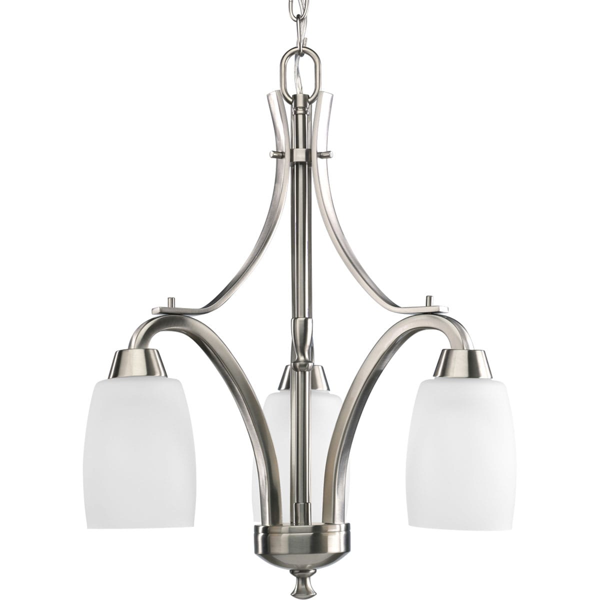 Illuminate your space with contemporary elegance using the Wisten 3-Light Brushed Nickel Chandelier from Progress Lighting. This transitional chandelier features striking tulip-shaped etched glass shades and a sleek brushed nickel finish, perfect for enhancing any room's modern aesthetic. Designed for versatility, it effortlessly complements dining rooms, kitchens, foyers, and more.