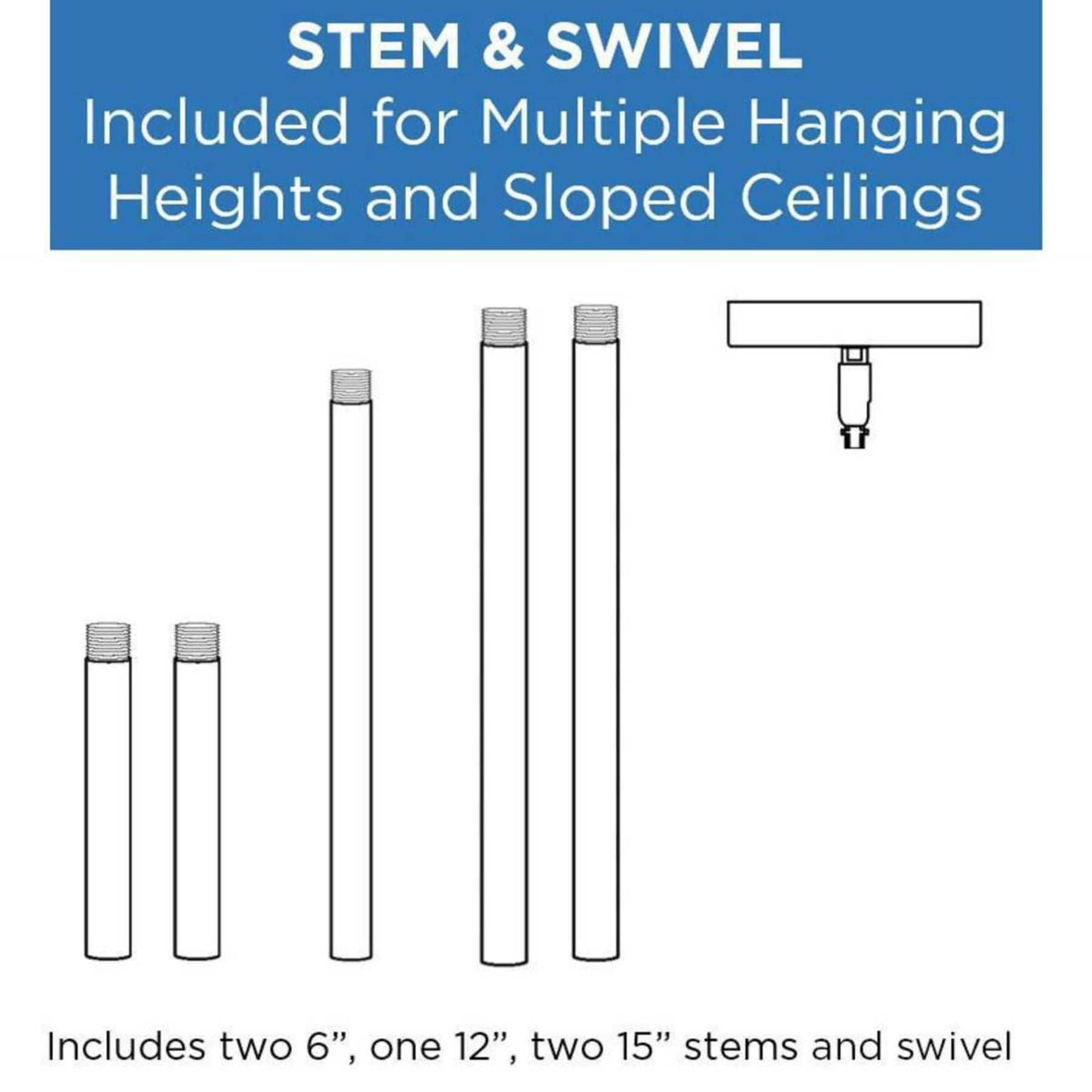 Adjustability: Comes with two 6-inch, one 12-inch, and two 15-inch stems for customizable hanging heights.