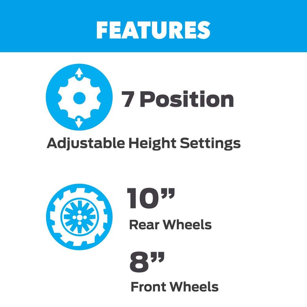 • Adjustable Heights: 7-position single lever height adjustment for tailored lawn care.