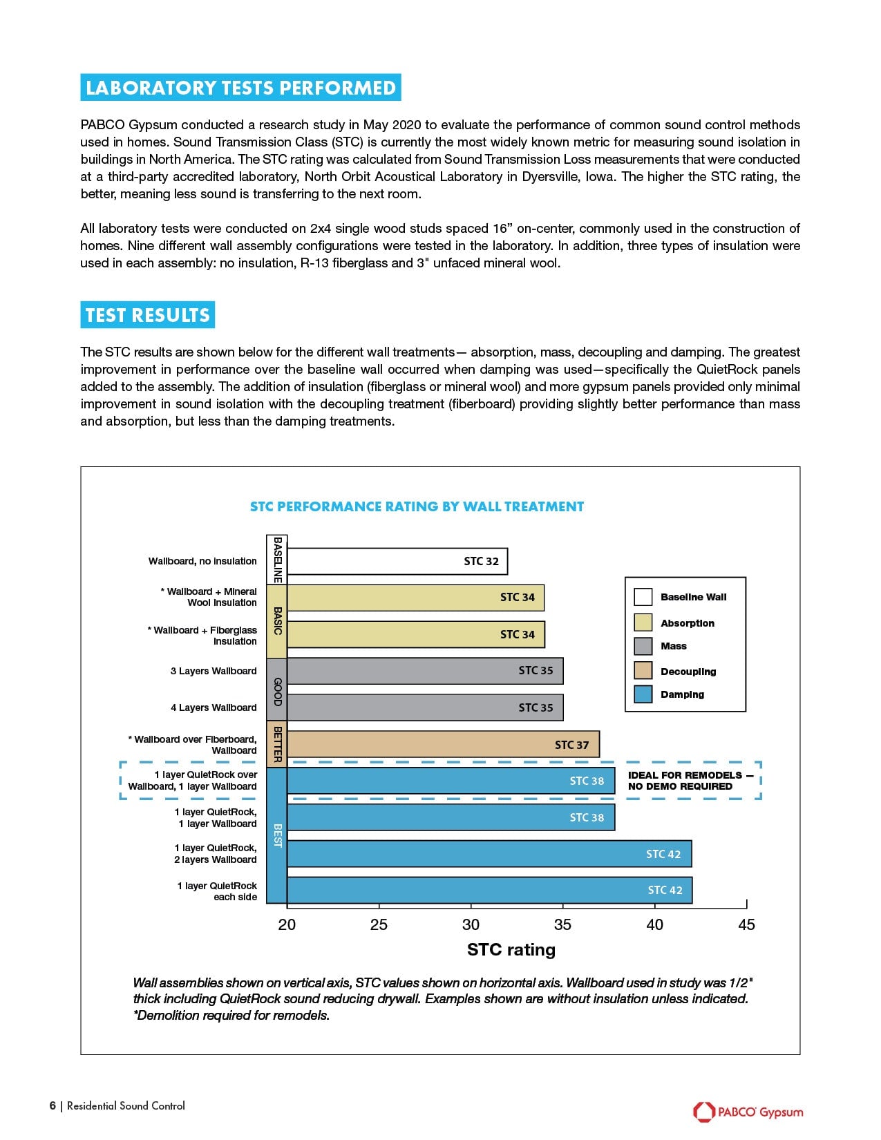 A: QuietRock 500 can deliver an STC rating of 42+ on standard 16-inch on-center wood stud assemblies, which is significantly higher than traditional drywall.