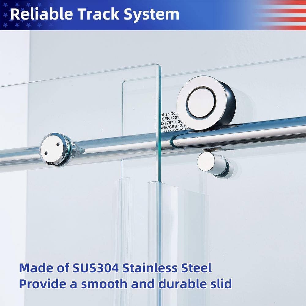 Enhance your bathroom with the RAINLEX Sliding Semi-Frameless Shower Door. Its elegant chrome finish and clear glass bring a contemporary open look to your shower space. Built from high-strength, shatterproof tempered glass, this door provides maximum durability while ensuring safety and reliability.