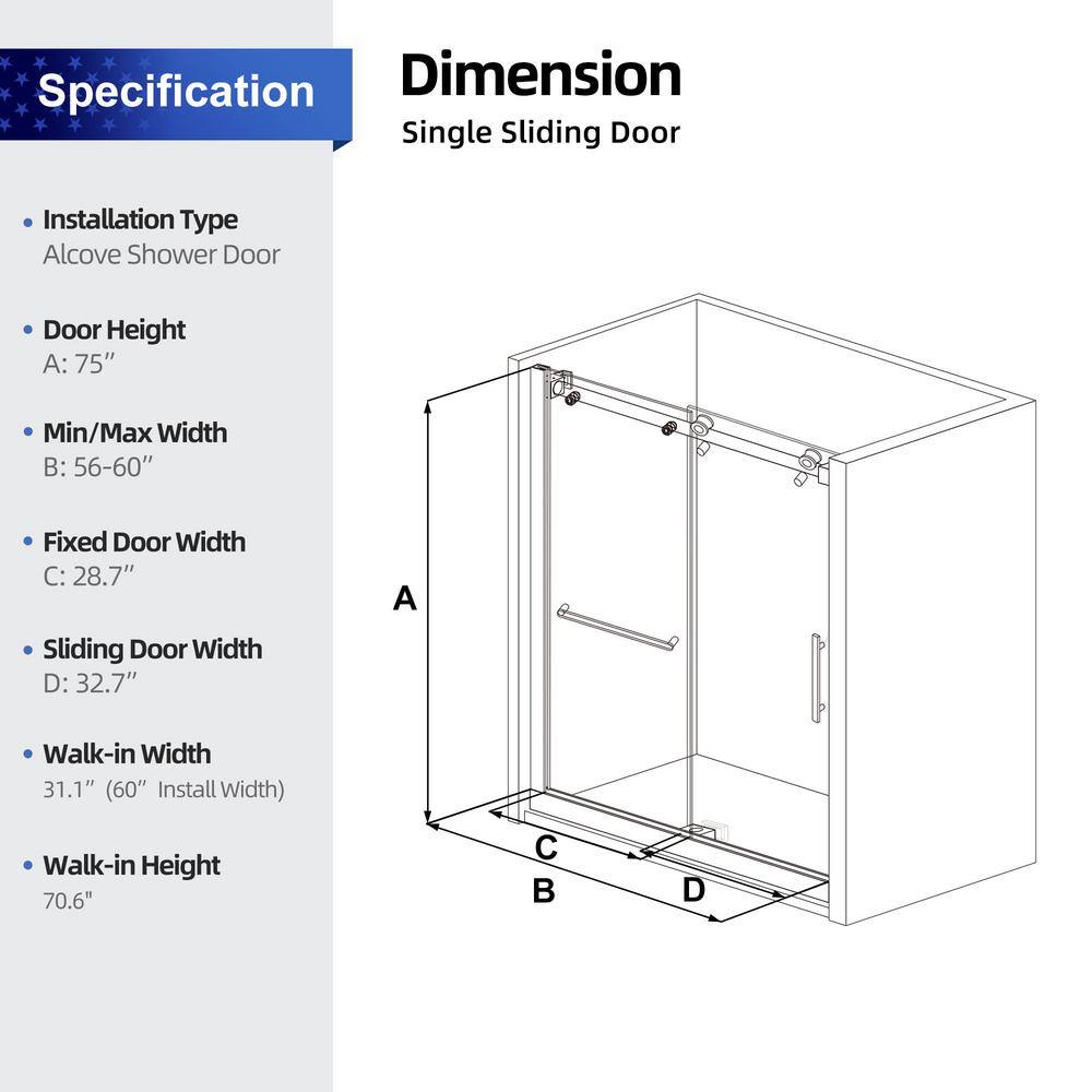 Dimensions: Accommodates 56-60 in. width and 75 in. height, ideal for flexible installations.