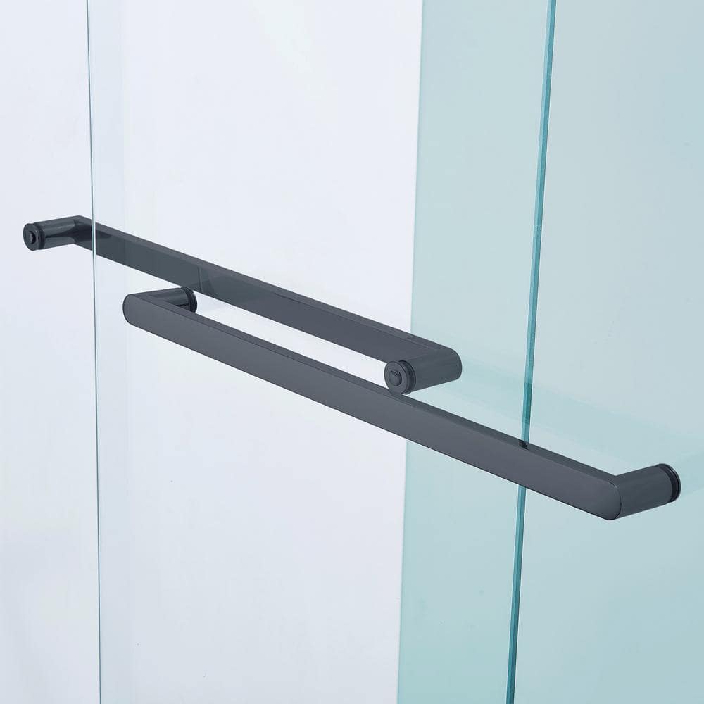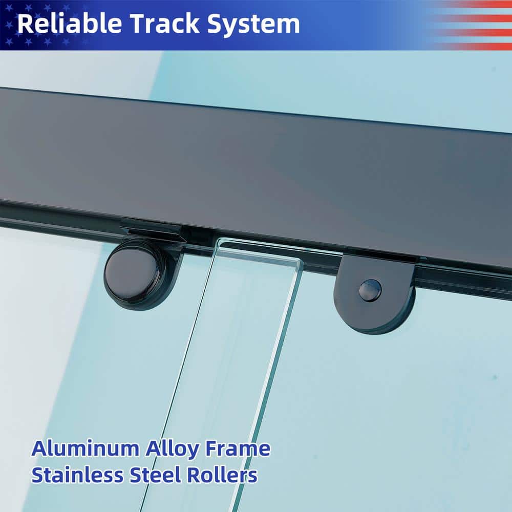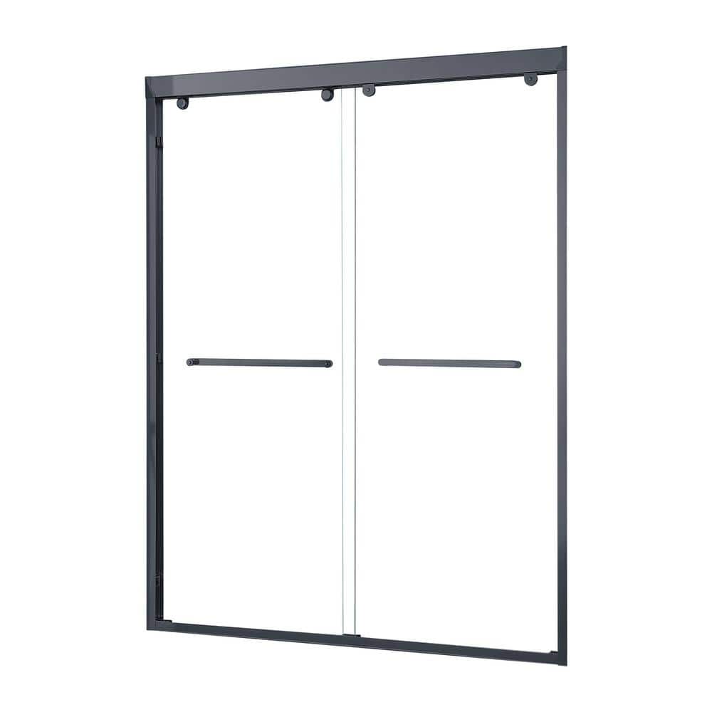 RAINLEX Matte Black Sliding Shower Door with Clear Glass