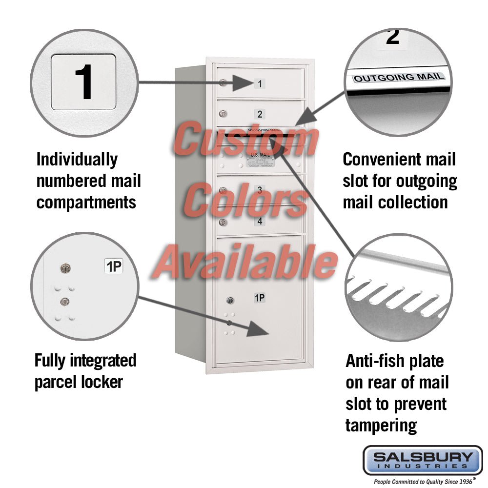 The Recessed Mounted 4C Horizontal Mailbox is a durable and secure solution for mail delivery in apartments, commercial buildings, and residential developments. Featuring heavy-duty aluminum construction, USPS approval, and ADA compliance, this mailbox is designed for both indoor and outdoor use.