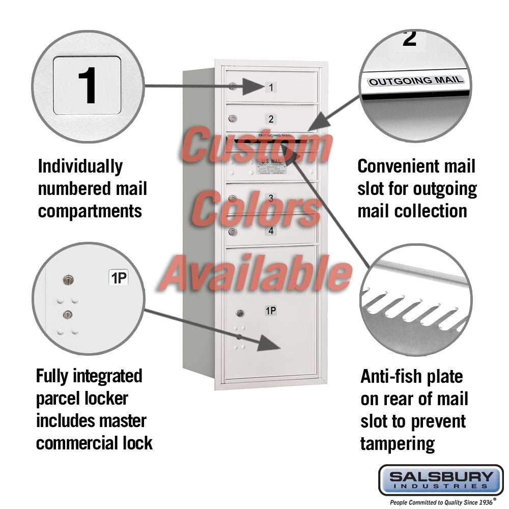The Recessed Mounted 4C Horizontal Mailbox is a durable and secure solution for private mail access. Constructed with heavy-duty aluminum and stainless steel hardware, it features a powder-coated finish and ADA compliance.