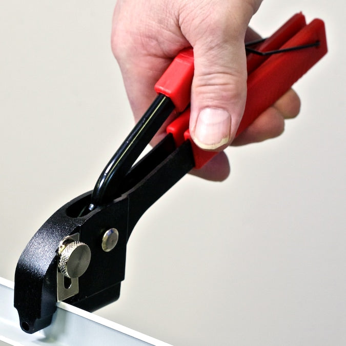 A: Simply align the grid punch with the area you wish to make a hole, squeeze the handles together, and it will create a precise 1/8-inch hole for hanger wire attachment.