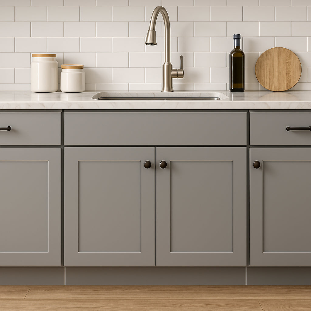 The RELIABILT Overlake 36-in Gray Shaker Sink Base Cabinet combines premium plywood construction with a timeless, versatile design. Its ready-to-assemble format and soft-close doors make installation easy and operation quiet, while the moisture-resistant finish ensures long-lasting beauty. Perfect for kitchen remodels or upgrades, this cabinet delivers both durability and style for any home improvement project.
