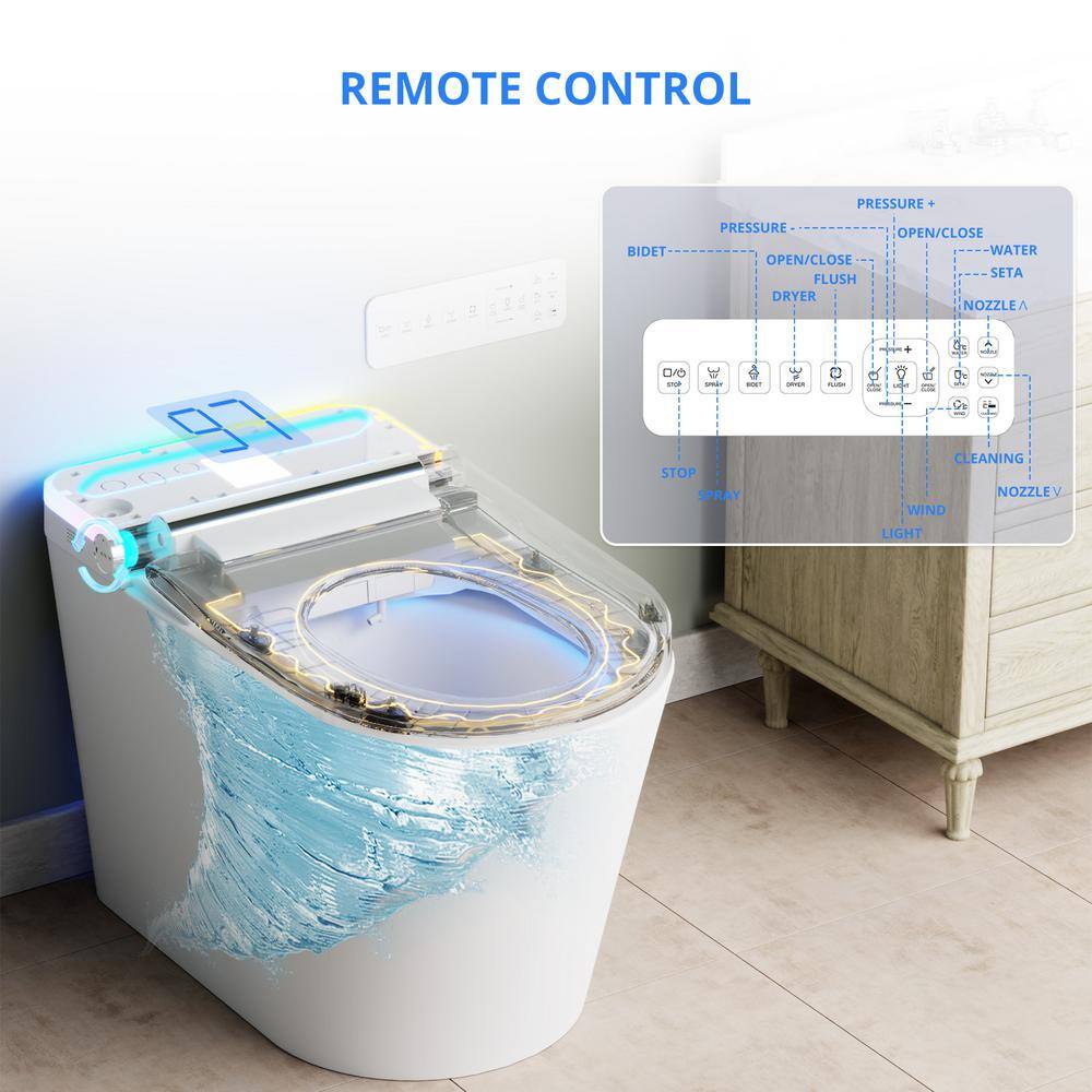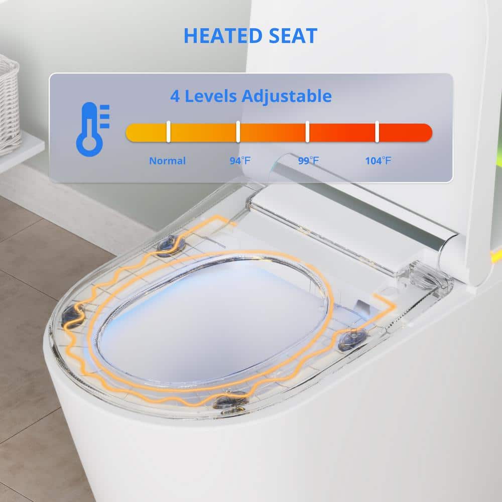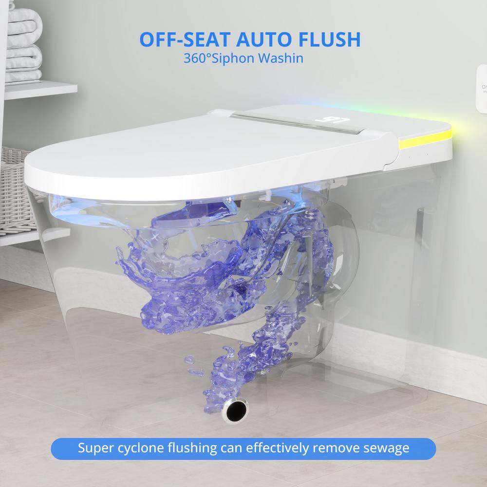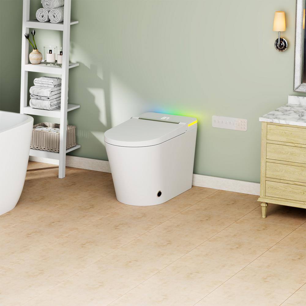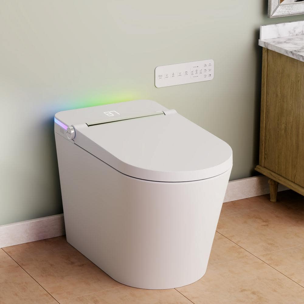 The Relyblo Elongated Smart Bidet Toilet transforms your bathroom experience with its innovative features and cutting-edge design. Featuring adjustable sprayer settings, built-in aromatherapy, and a motion-activated foot sensor, this toilet offers unmatched comfort and convenience. Its integrated 64-color LED lighting and thermostatic heating create a customizable and luxurious oasis right in your home.