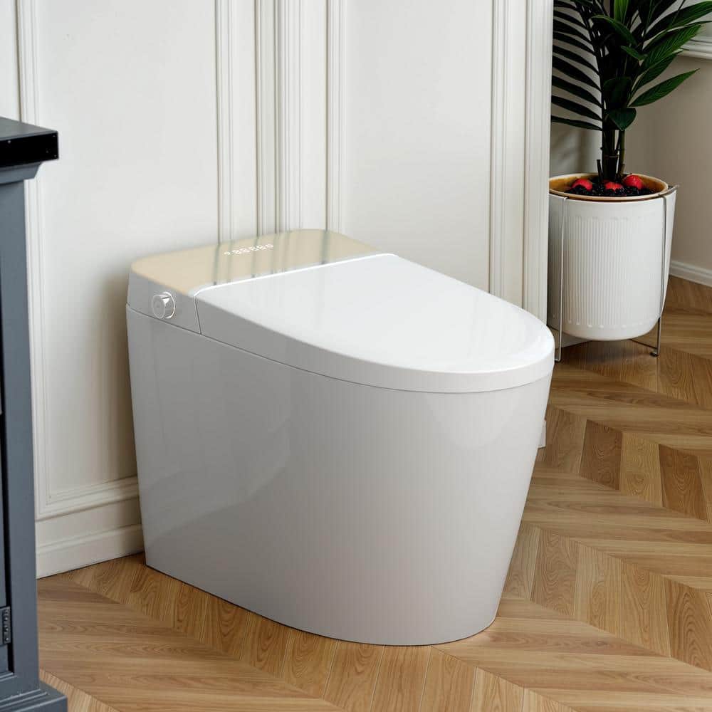 Immerse yourself in the luxury of Relyblo's Foot Sensing Elongated Bidet Toilet, as it transforms an ordinary bathroom into a serene spa sanctuary. Its exquisite Ivory Gold finish adds a layer of elegance, making it a centerpiece of refined taste. Through innovative design, it harmonizes technology with tranquility, perfect for a seamless morning routine. The delicate interplay between form and function makes this bidet toilet an indispensable luxury, elevating everyday living to a sublime experience.