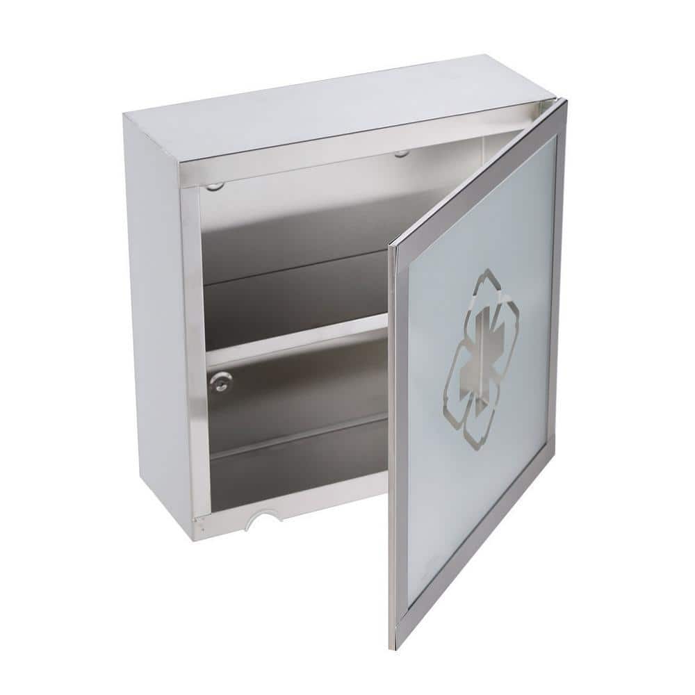 A: The cabinet features two shelves perfect for holding daily medications, first aid items, toiletries, or makeup.