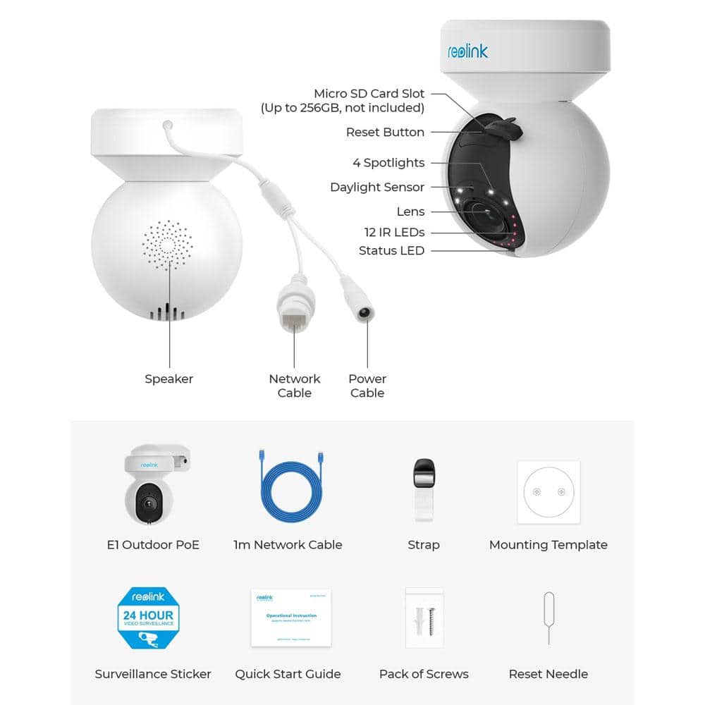 Safeguard your property with the REOLINK E1 Outdoor 4K PTZ Security Camera. It delivers stunningly clear 4K ultra-HD video and features intelligent auto-tracking to follow and monitor movement. Its durable design ensures reliable performance in any weather, while the Power over Ethernet setup simplifies installation.