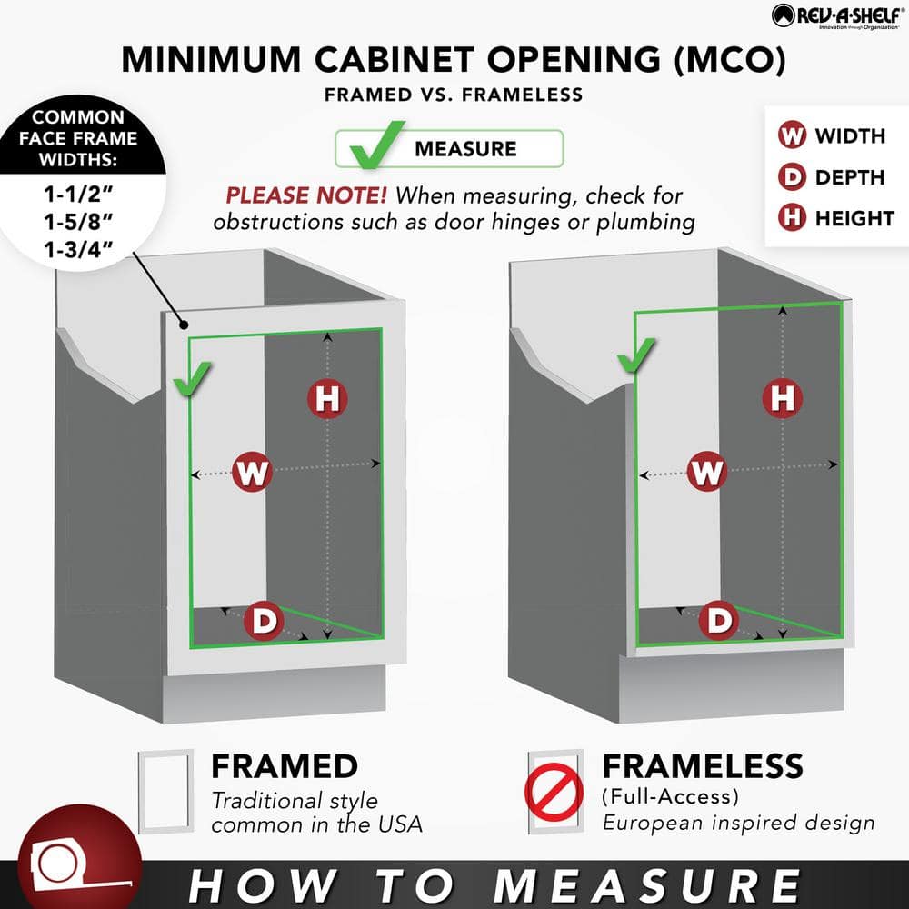 Versatile Fit: Suitable for both frameless and face frame cabinets with specific minimum openings.