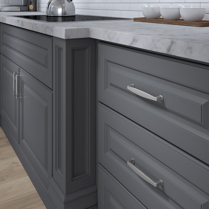Upgrade your cabinets with the Charlemagne Brushed Nickel Drawer Pull, combining timeless elegance with practicality. Crafted from durable metal with a sleek, brushed nickel finish, this pull adds a transitional touch to any kitchen or bathroom.