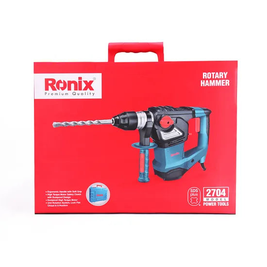 The Ronix 2704 SDS-Max Rotary Hammer Drill combines power and versatility for demanding concrete work. With its 1600W motor and 7J impact energy, this tool offers professionals a seamless experience for drilling and chiseling. Enhanced by vibration control and a safety clutch, it's designed for prolonged use without fatigue.