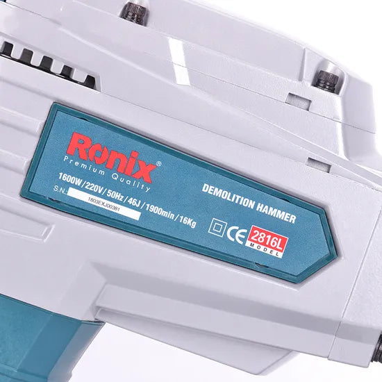 Ronix 2816L 1600W Industrial Motor with 46j Impact Energy Designed to Complete Concrete Metalworking Demolition Hammers