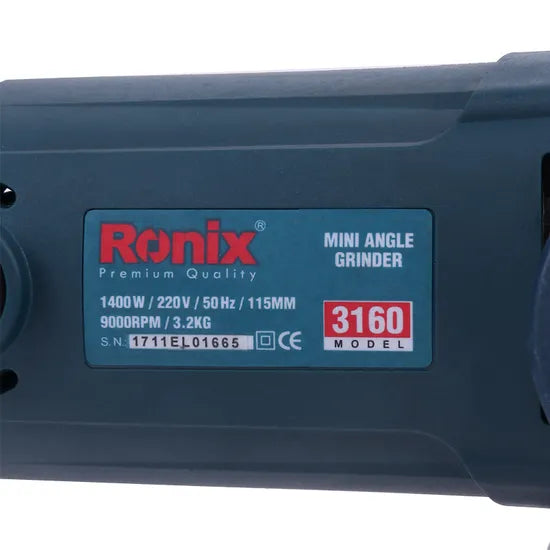 The Ronix 3160 Power Angle Grinder brings professional-grade power and efficiency to your toolbox with a robust 1400W motor and a lightweight design. Its 2-position auxiliary handle ensures comfort and control during prolonged use, making it ideal for a wide range of cutting and grinding projects. Experience precision and durability with the Ronix flagship angle grinder, designed for any contractor or enthusiastic DIYer.
