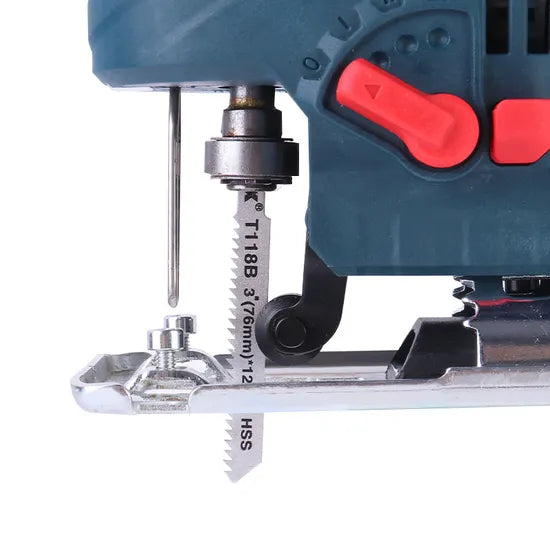 A: Yes, the jig saw includes a dust blower system that clears dust from the cutting line, offering better visibility and a cleaner working environment.