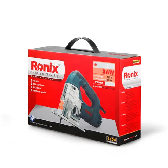 Experience precision cutting with the Ronix 4120 Variable-Speed Jig Saw. Designed for continuous operation, this power tool features a soft grip for comfort and increased control. Its 650W motor and 0-3100 RPM speed deliver versatile performance for various materials.