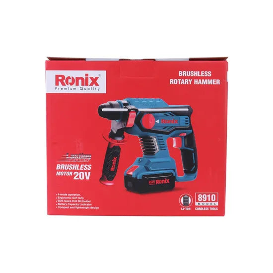 Ronix 8910 20V SDS Plus Rotary Hammer Drill Selector Variable Speed Adjustable Handle 2.2j Brushless Rotary Hammer