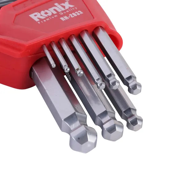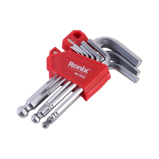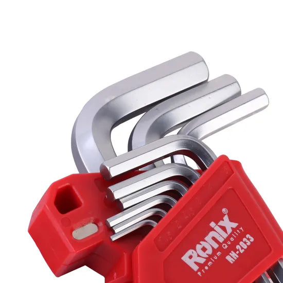 The Ronix RH-2033 Magnetic Hex Key Set combines quality chrome-vanadium steel with a durable matt finish for high-torque applications. Ideal for both professional and DIY tasks, this 9-piece set features a magnetic ball-end design that simplifies tasks by securely holding fasteners in tough-to-reach areas.