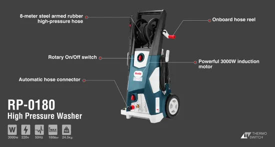 Ronix High Pressure Machine Model RP-0180 3000W Induction Motor Carwash Cleaning Car Washer